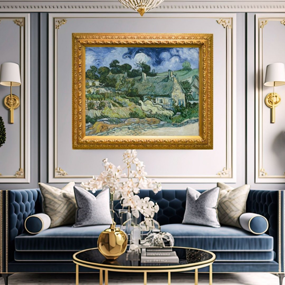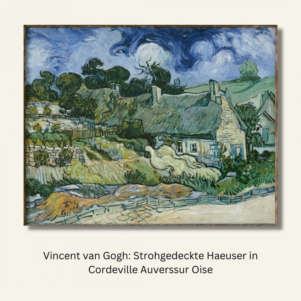 لوحة باسم (Stroh gedeckte Haeuser in Cordeville Auvers sur Oise) لوحه رسمها فان جوخ 1890