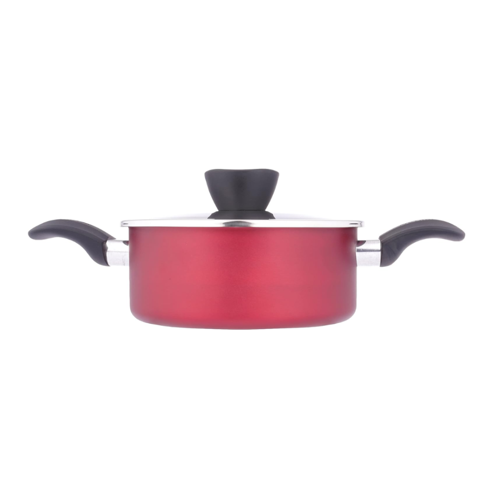 قدر طهي ستيل سطح غير لاصق مع غطاء من السيف -مقاس 18 سم - لون احمر