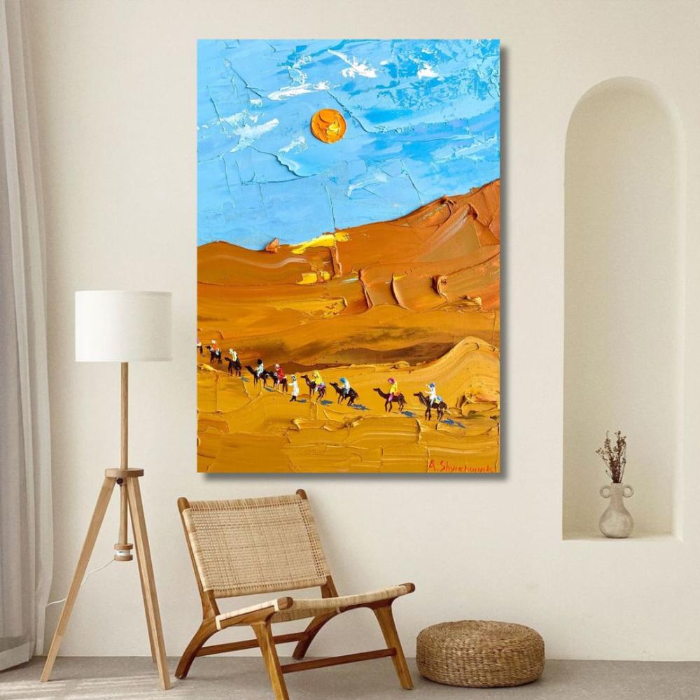 لوحة جدارية فنية مطبوعة - تجريدية الصحراء والأبل