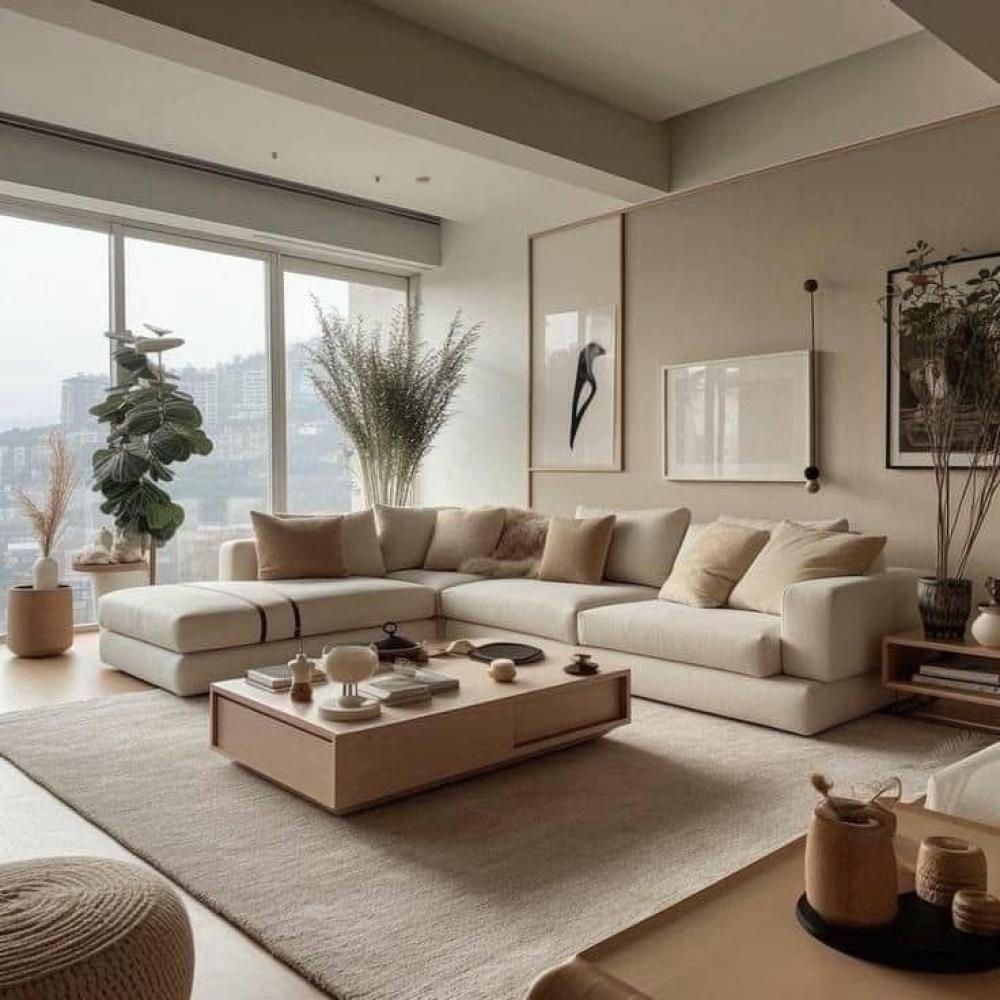 كنب حرف ال كنبة على شكل حرف L بلون بيج - التوازن المثالي بين الأناقة والراحة