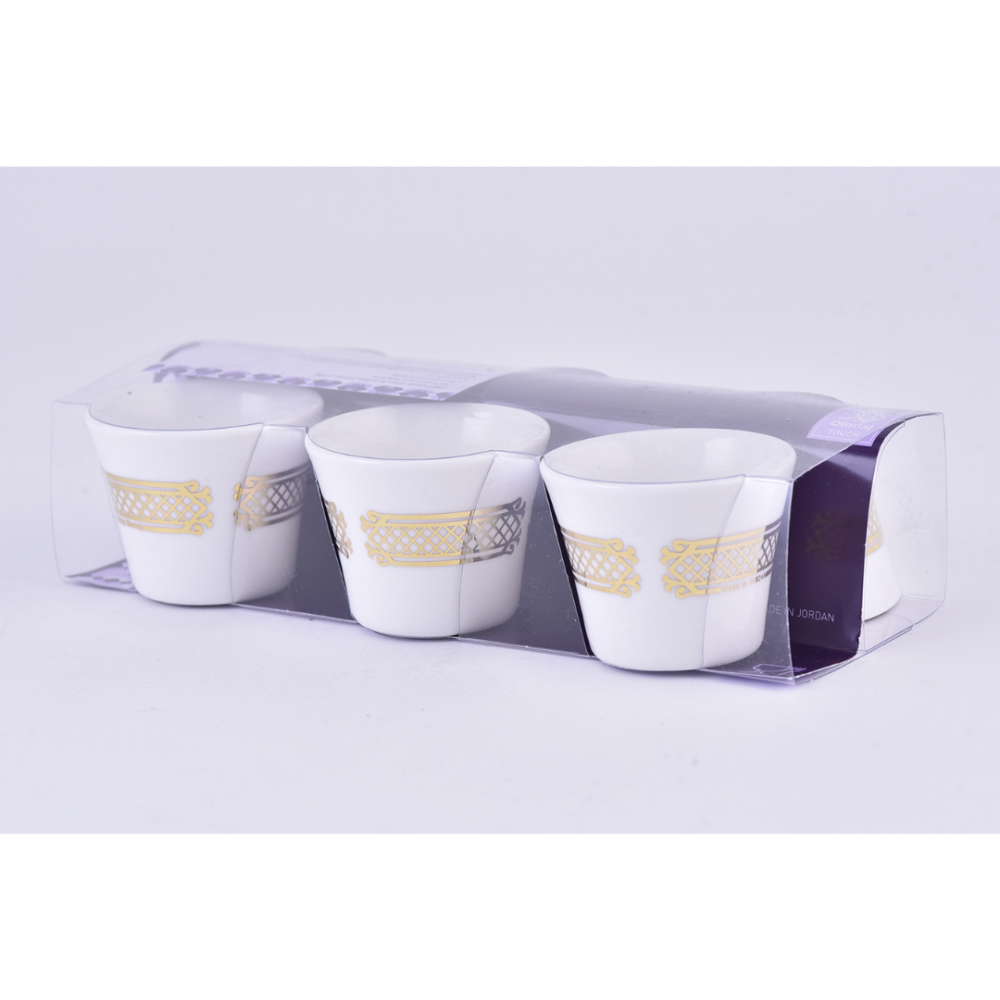 طقم فناجين قهوة عربية بورسلان بزخرفة ذهبية عصرية وانيقة