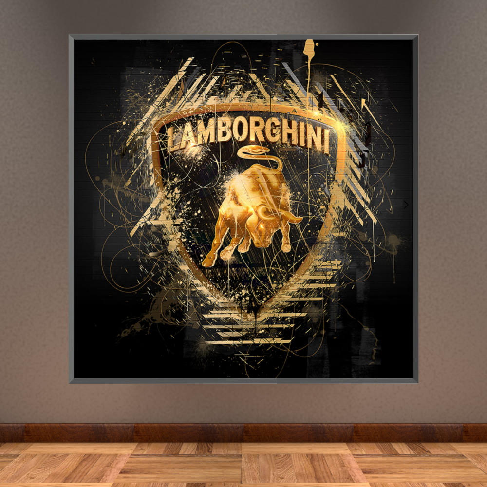 لوحة شعار لمبورغيني مصنوعة من قماش كنفاس الايطالي لمكان اكثر جمالا , طباعة عاليه الجودة بالتقنية الأسبانية الاولى على مستوى العالم, متوفرة بعدة خيارات وعدة مقاسات.