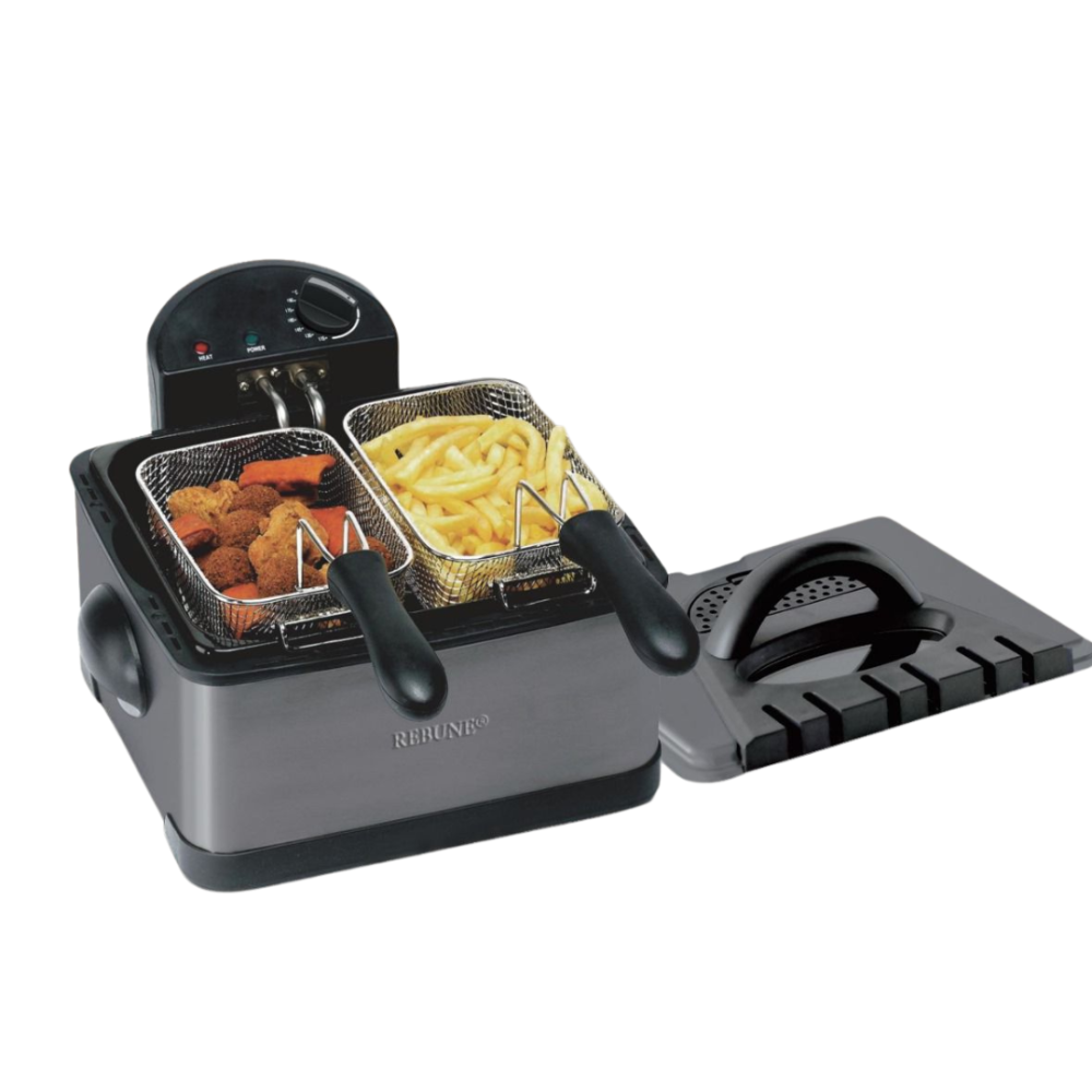 قلاية الزيت الكهربائية المزدوجة من ريبون هي الخيار المثالي لتحضير الطعام المقرمش بأداء عالي، مما يجعلها إضافة عملية إلى كل مطبخ.