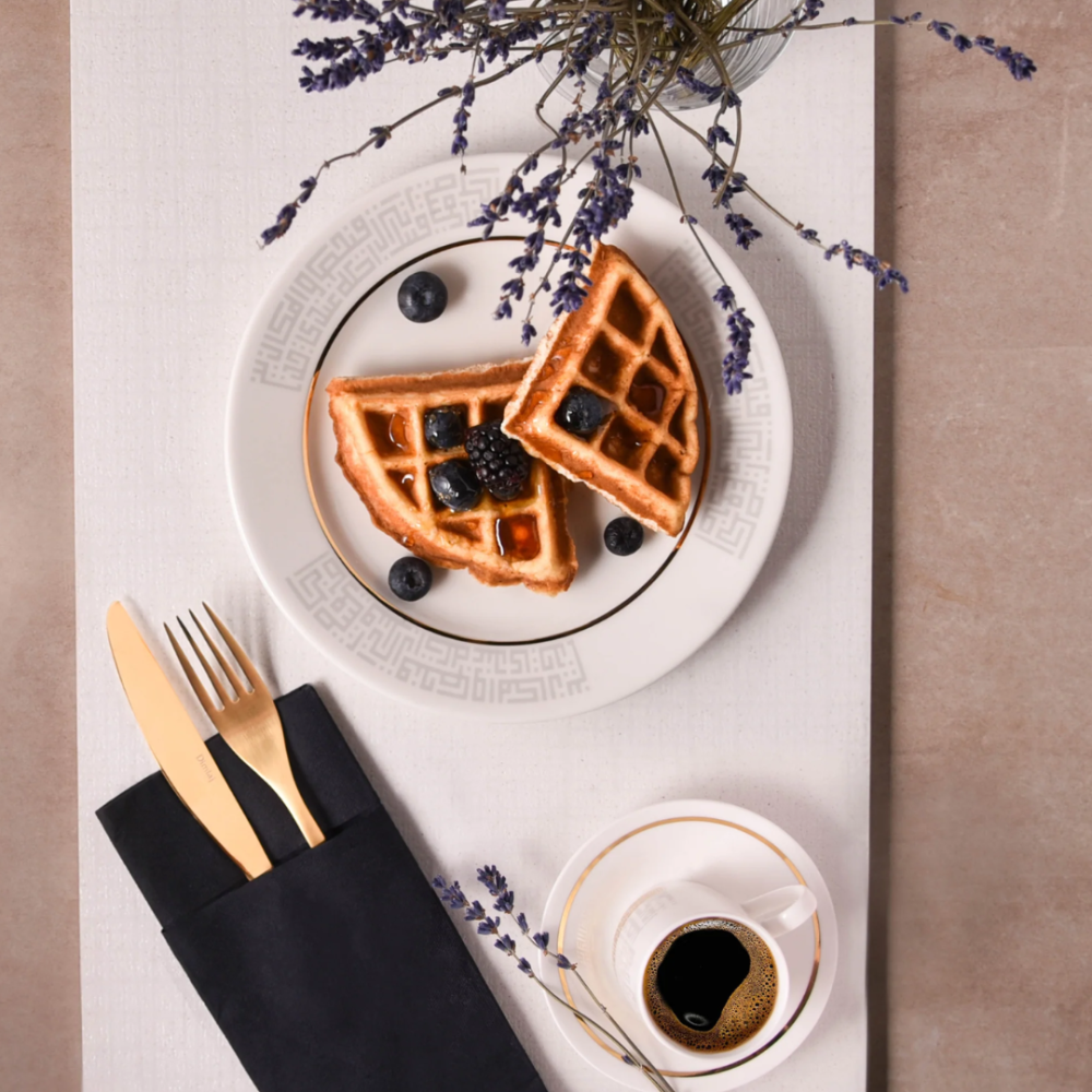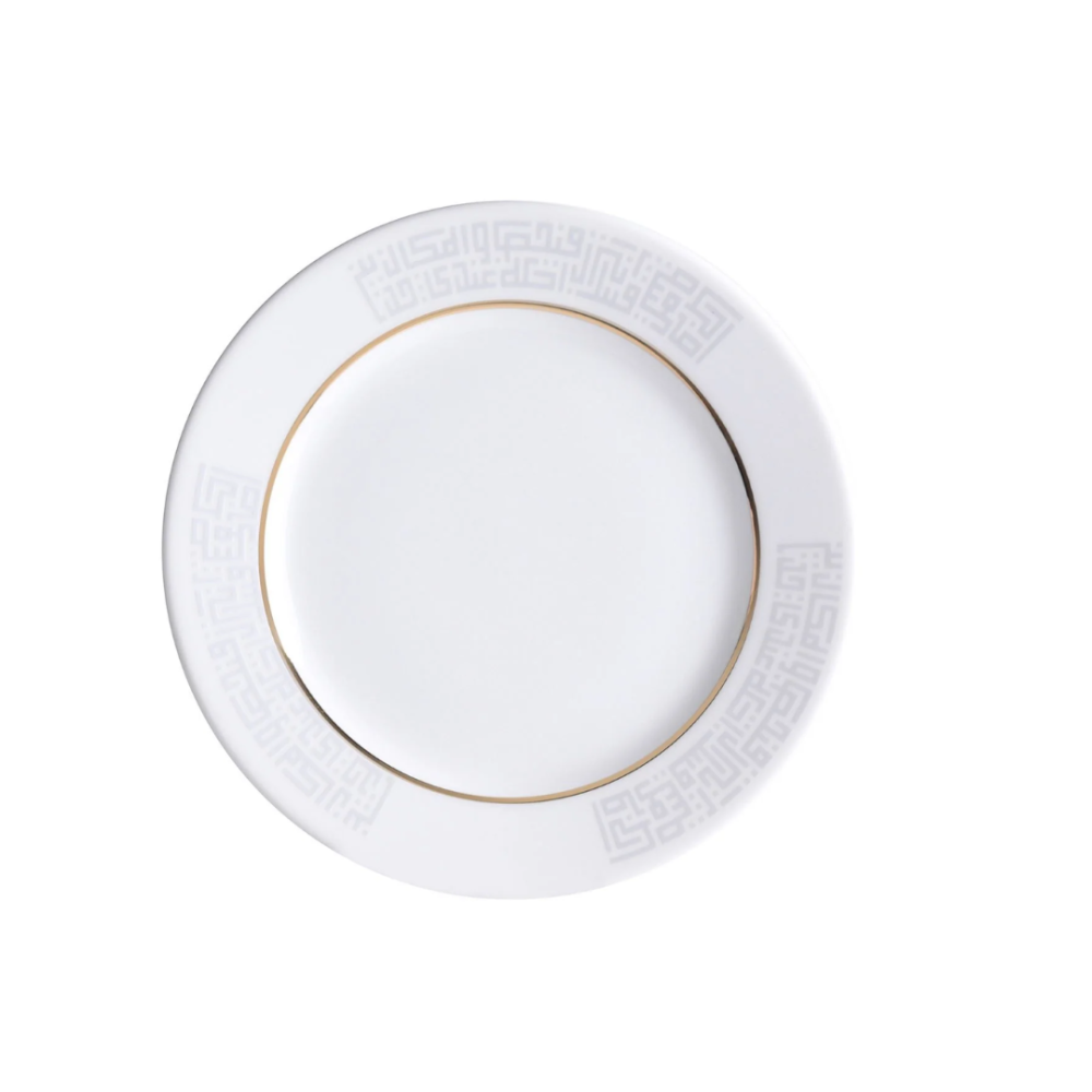 طقم صحون بورسلان فاخر بزخرفة ذهبية من الخط العربي الكوفي