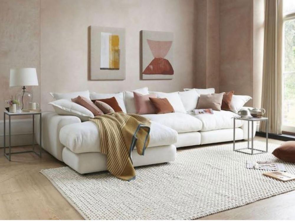 حول غرفة معيشتك إلى ملاذ للراحة والفخامة مع هذا الكنب الزاوية بتصميمه الأنيق ولونه الأبيض الرائع.