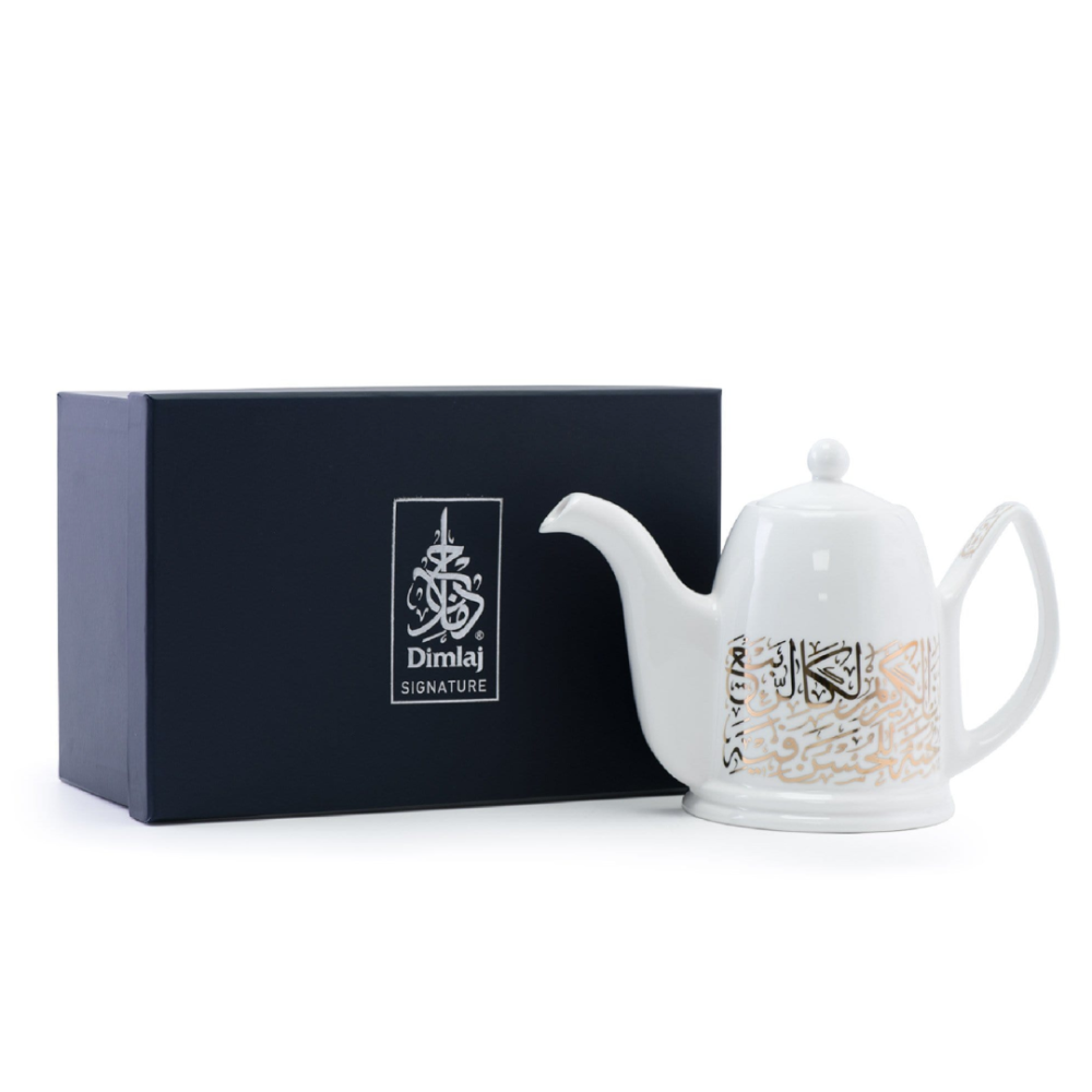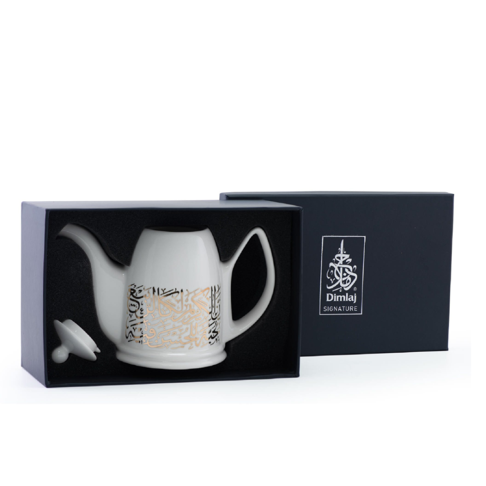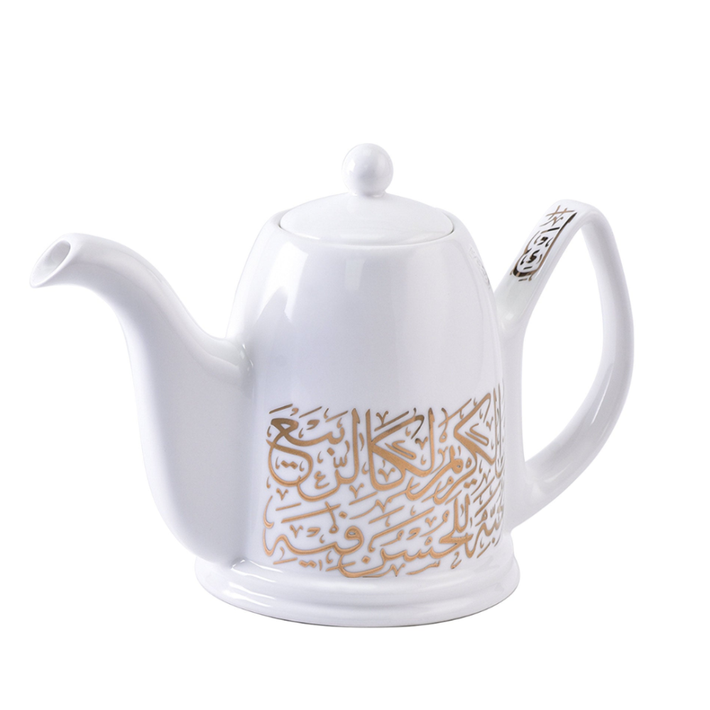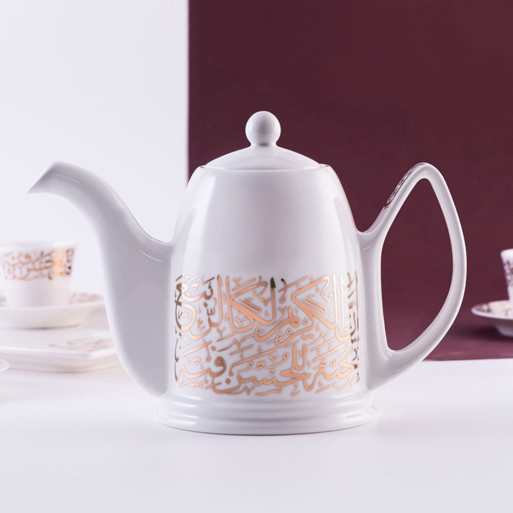 ابريق شاي زجاجي فاخر بزخرفة ذهبية من الخط العربي