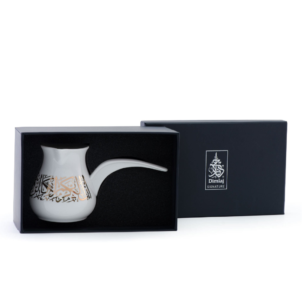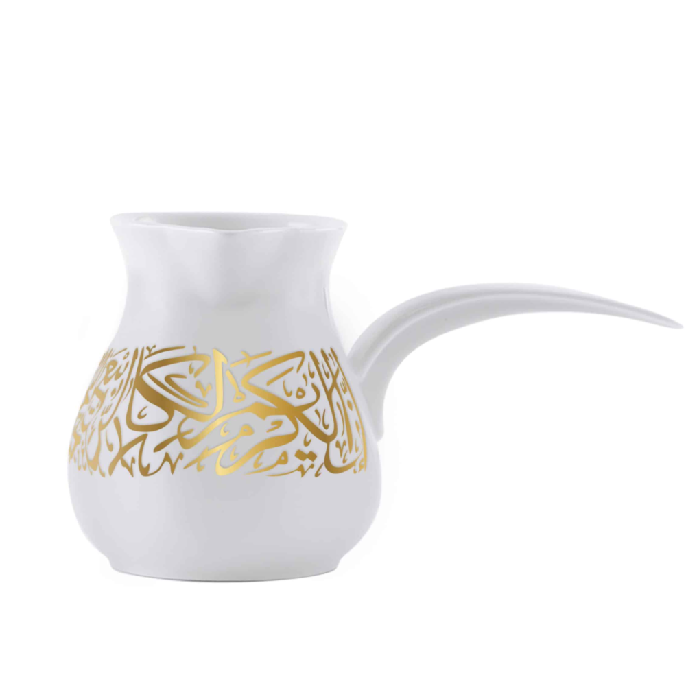 دلة قهوة كبيرة فاخرة بزخرفة ذهبية من الخط العربي