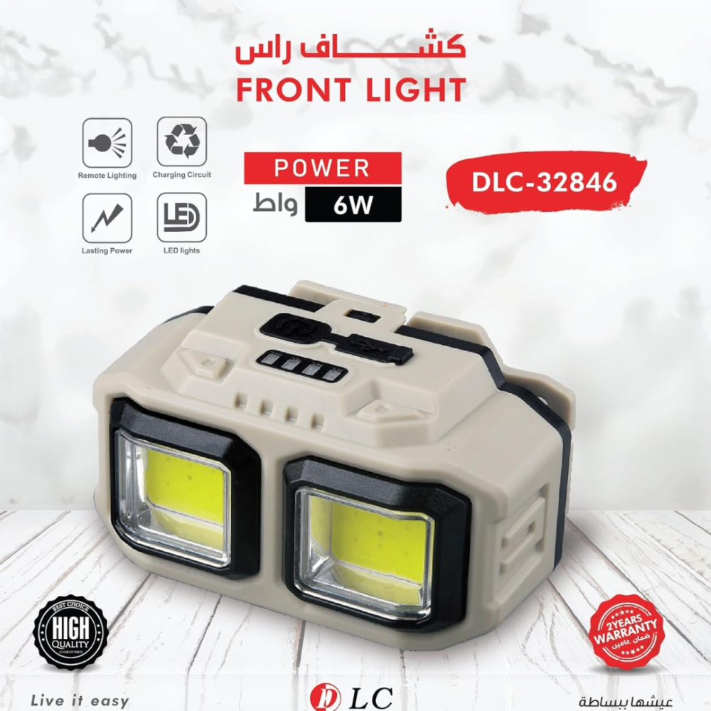 استمتع بإضاءة عملية ومباشرة مع كشاف الرأس من دي ال سي، المصمم ليمنحك حرية الحركة أثناء العمل أو التنقل في الأماكن المظلمة.