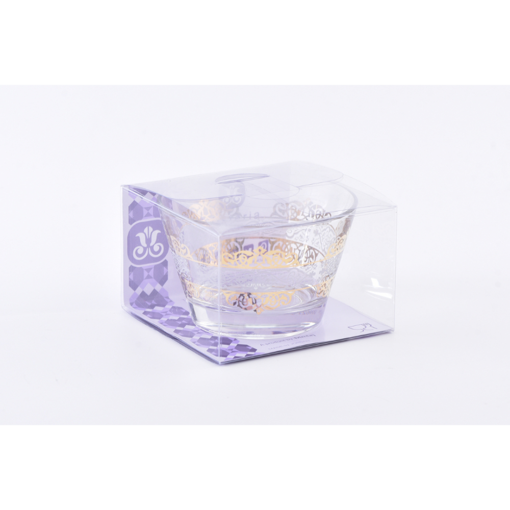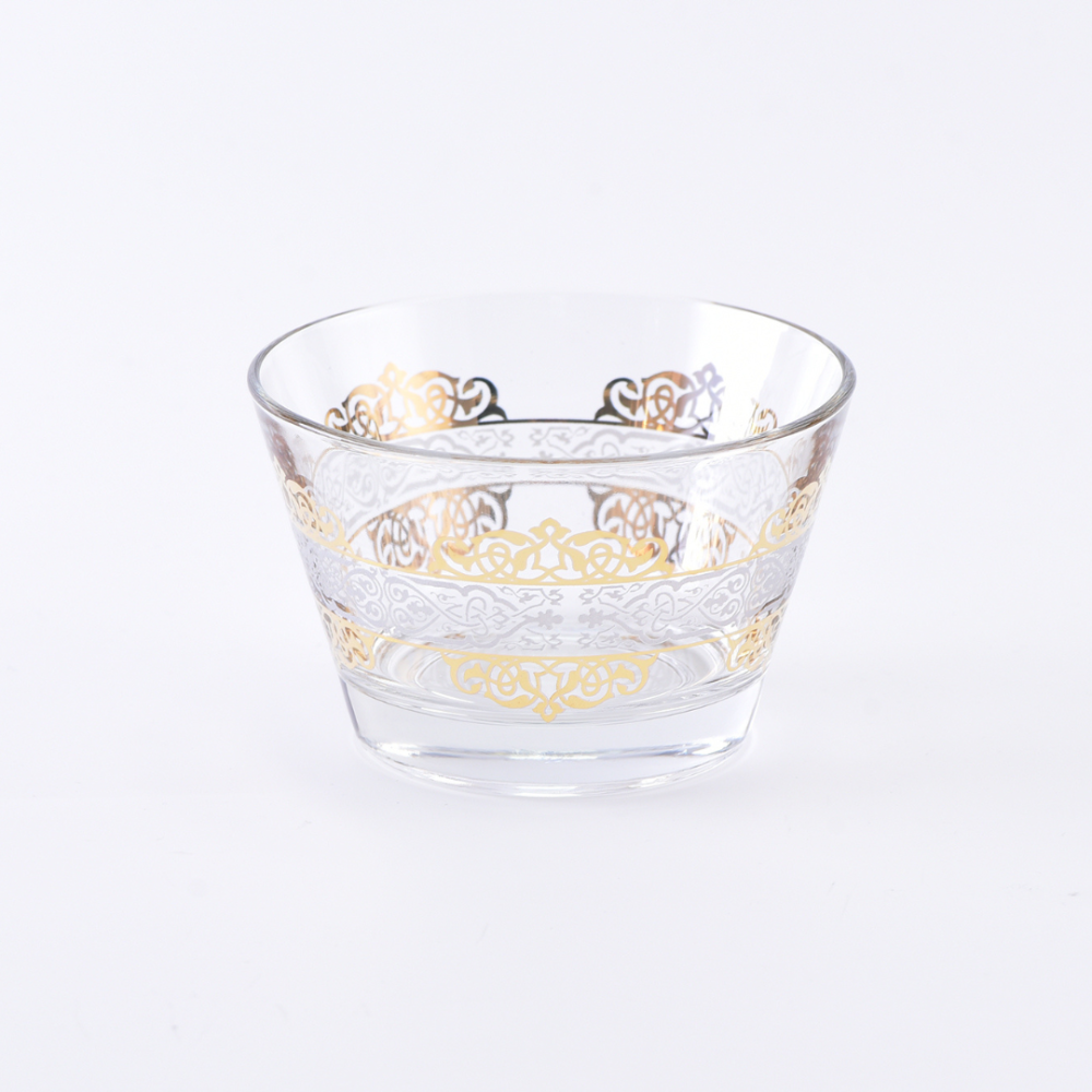 زبدية زجاجية مذهبة فضي بزخرفة هندسية عصرية وانيقة