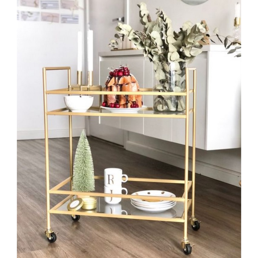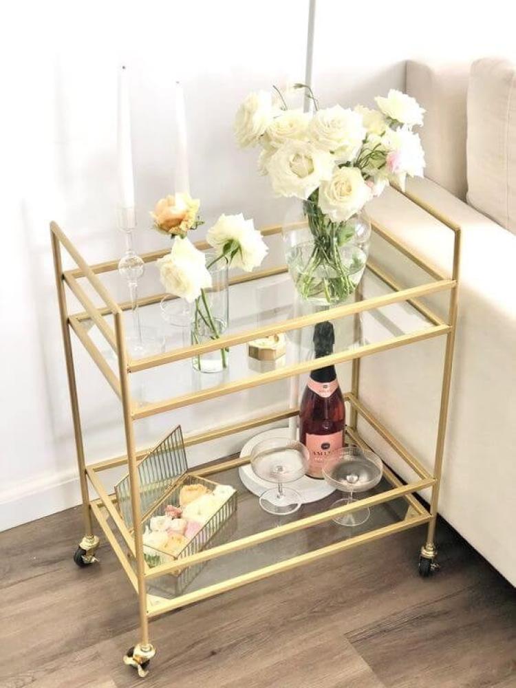 عربة تقديم معدن و زجاج ذهبي