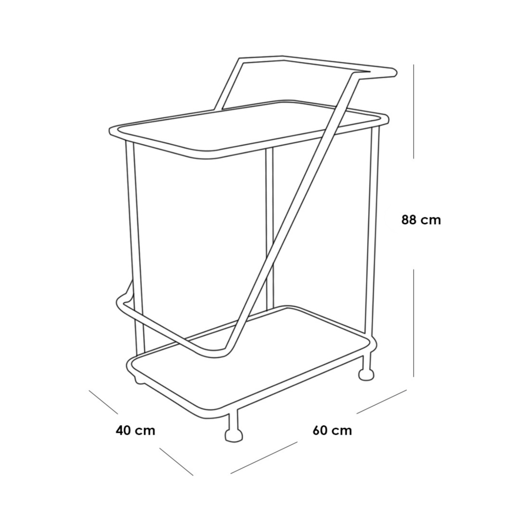 توفر هذه العربة مساحة واسعة على الرفين لتنظيم وتقديم الطعام بسهولة في المناسبات المختلفة، مما يجعلها قطعة عملية وجذابة تضيف لمسة من الرقي إلى منزلك
