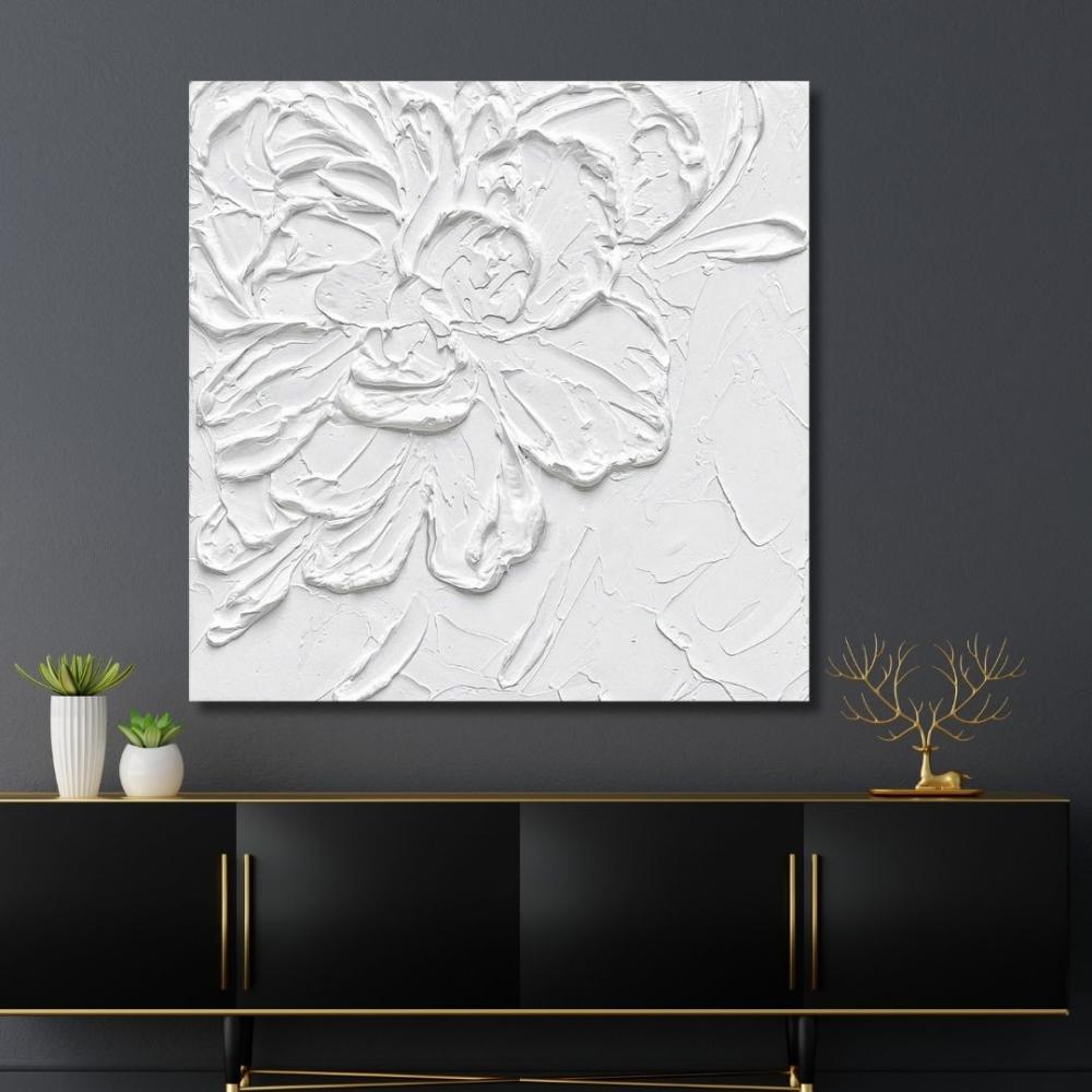 • تصميم يحاكي اللوحات الجبسية: تقدم اللوحة تصميمًا يجمع بين الجمال الكلاسيكي للجبس والتفاصيل الدقيقة للأقمشة المتداخلة، مما يضيف عمقًا وبعدًا فنيًا للجدران.