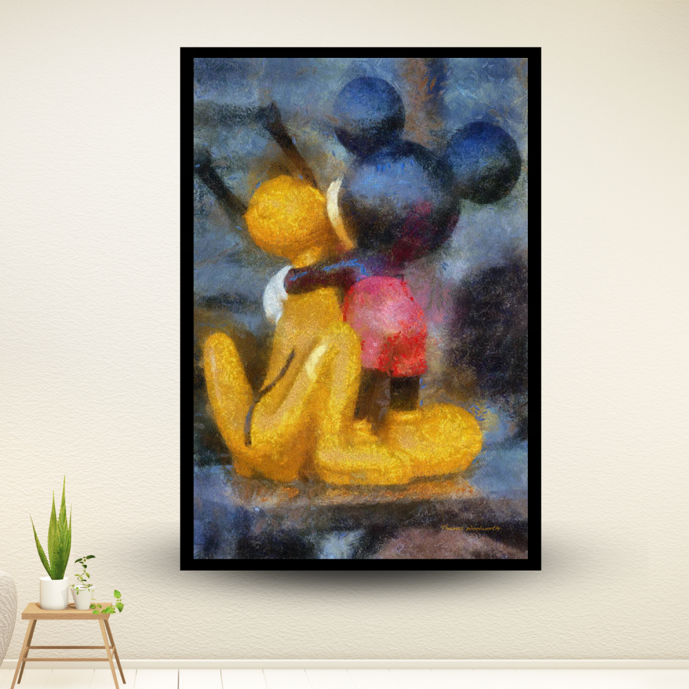 لوحة ميكي موس مصنوعة من قماش كنفاس الايطالي لمكان اكثر فخامة تنعكس فيه الألوان والفن والجمال, طباعة عاليه الجودة بالتقنية الأسبانية الاولى على مستوى العالم, متوفرة بعدة خيارات وعدة مقاسات.