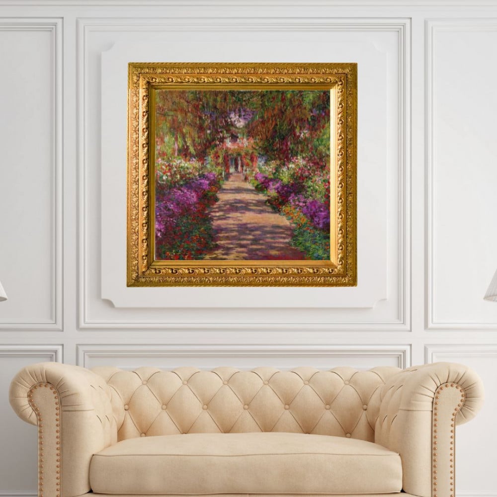 لوحة باسم (A Pathway in Monets Garden Giverny ) لوحه رسمها مونيه عام 1902
