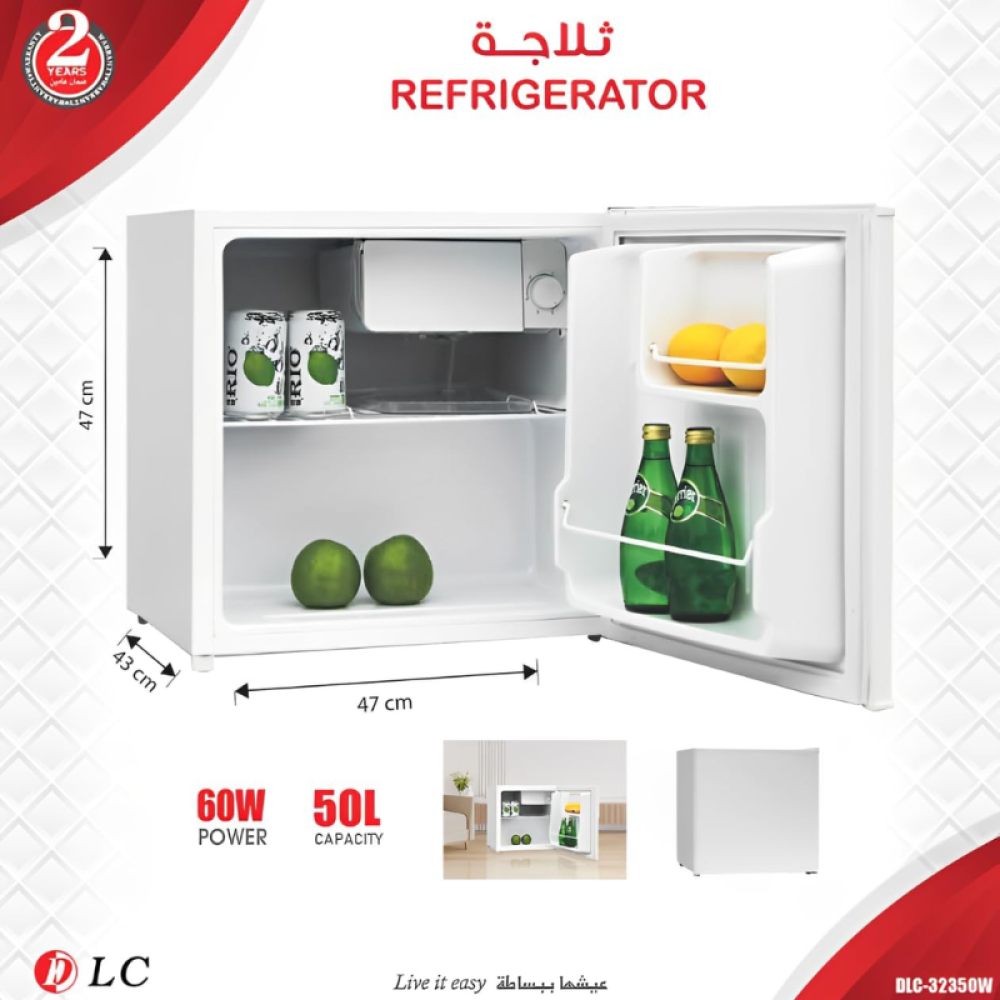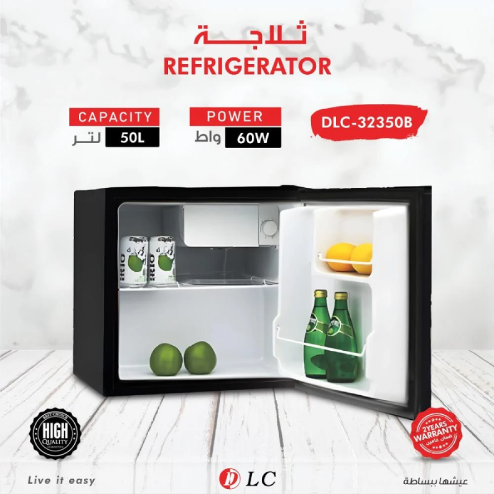 تمتع بحفظ مشروباتك وأطعمتك الطازجة مع ثلاجة LC الصغيرة بسعة 50 لتر وتصميم عملي مدمج. مثالية للمكاتب، الغرف، الفنادق أو حتى كخيار إضافي في المنزل.