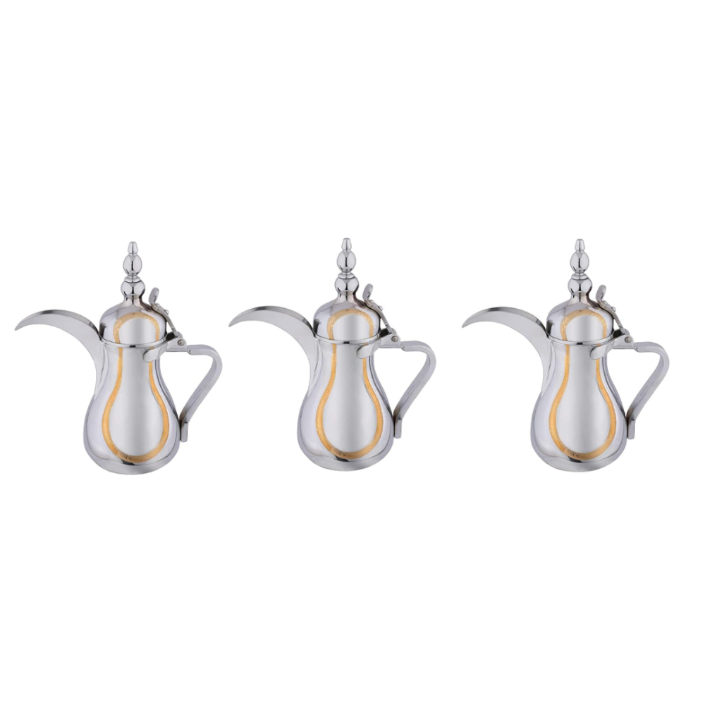 طقم دلة قهوة عربية ستيل من السيف- 3 قطع - لون ذهبي وفضي