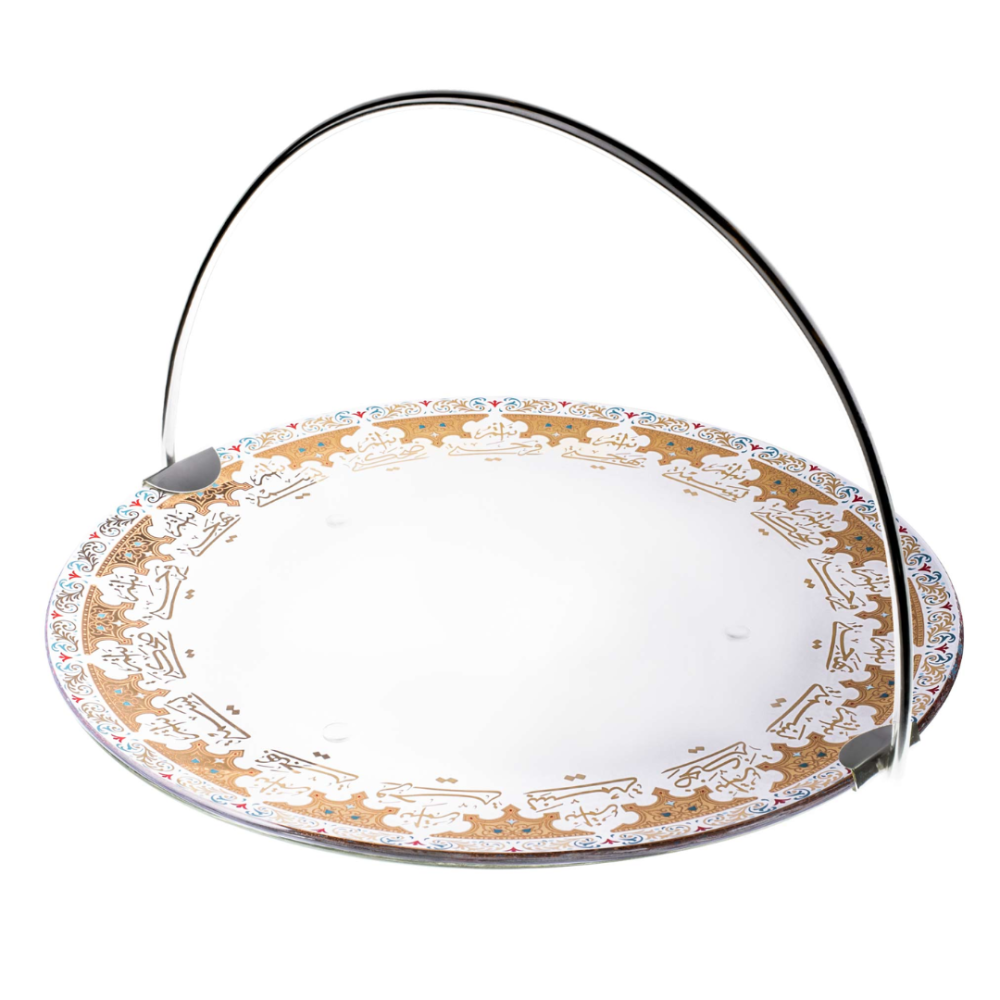 صينية تقديم زجاجية فاخرة بزخرفة ذهبية مفردات مختلفة من اللغة العربية