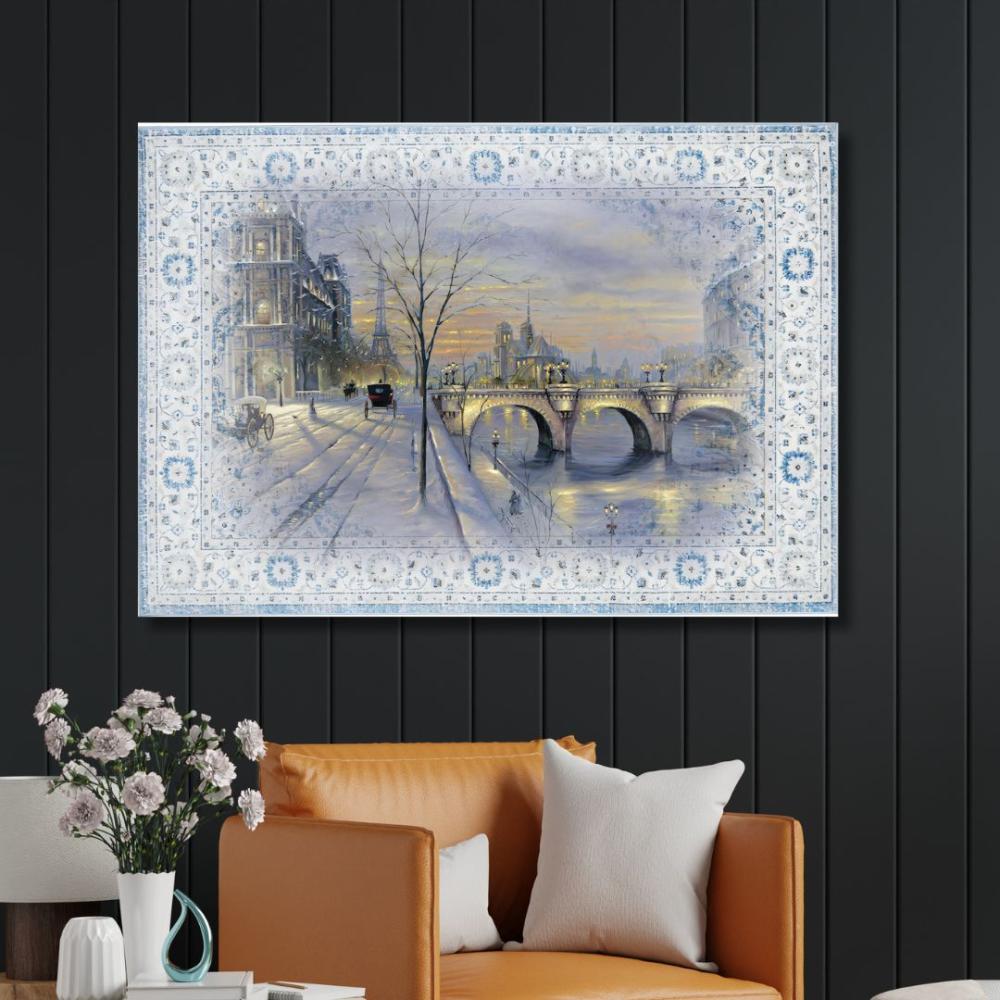 لوحة جدارية مطبوعة بخلفية سجاد وكولاج صورة مدينة