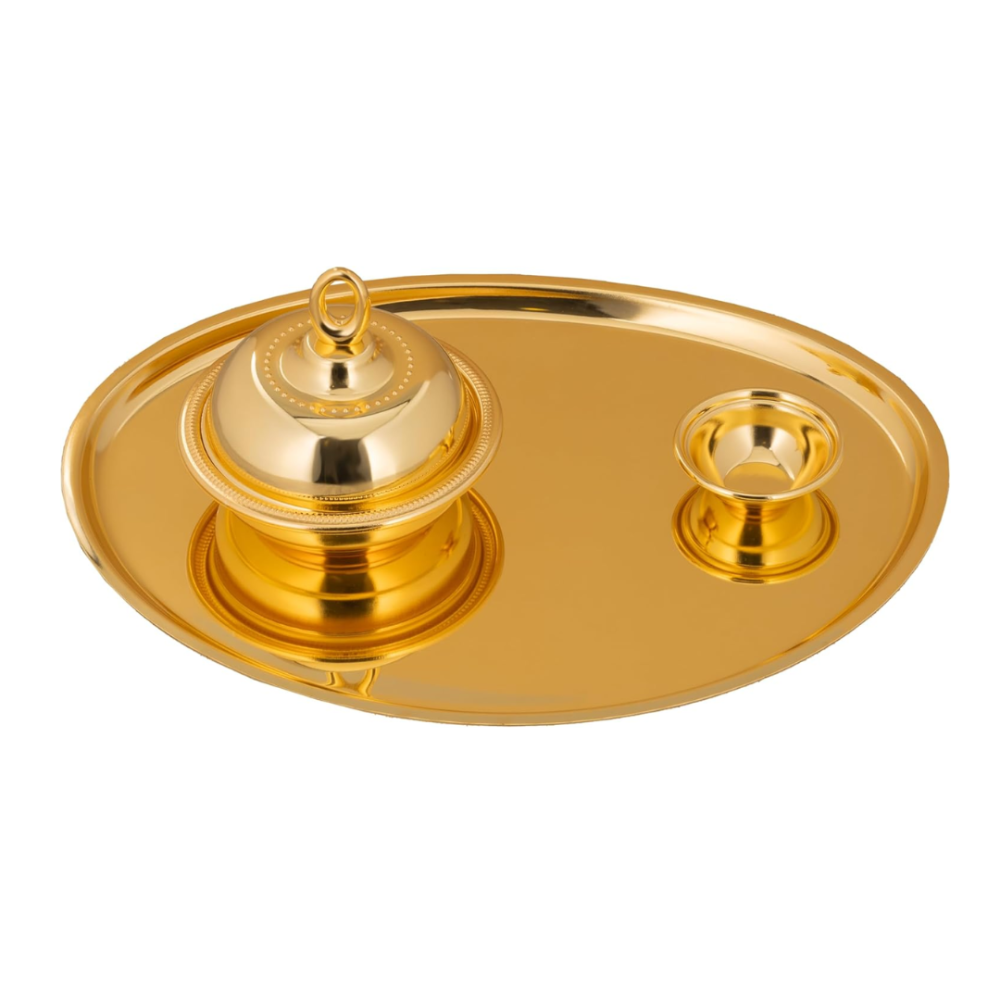 صينية تقديم بيضاوية مع وعاء تمر ووعاء صغير من السيف - لون ذهبي