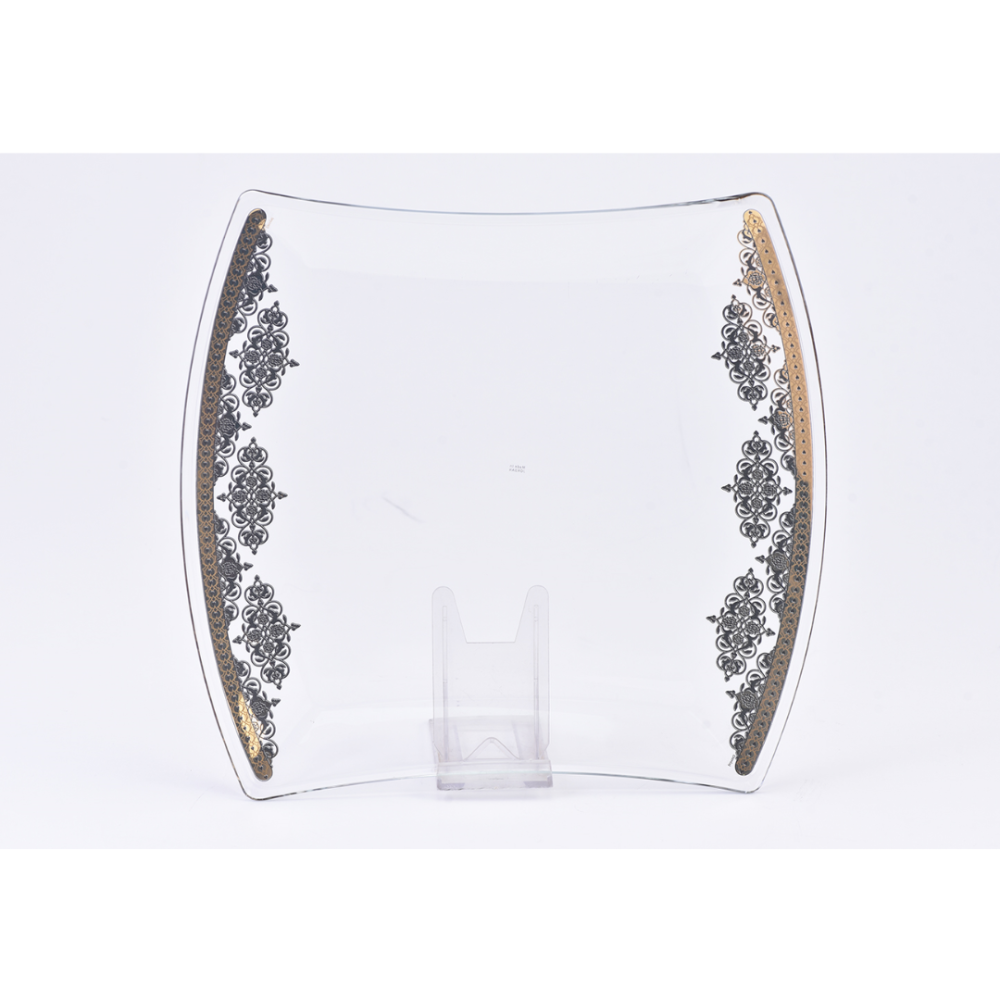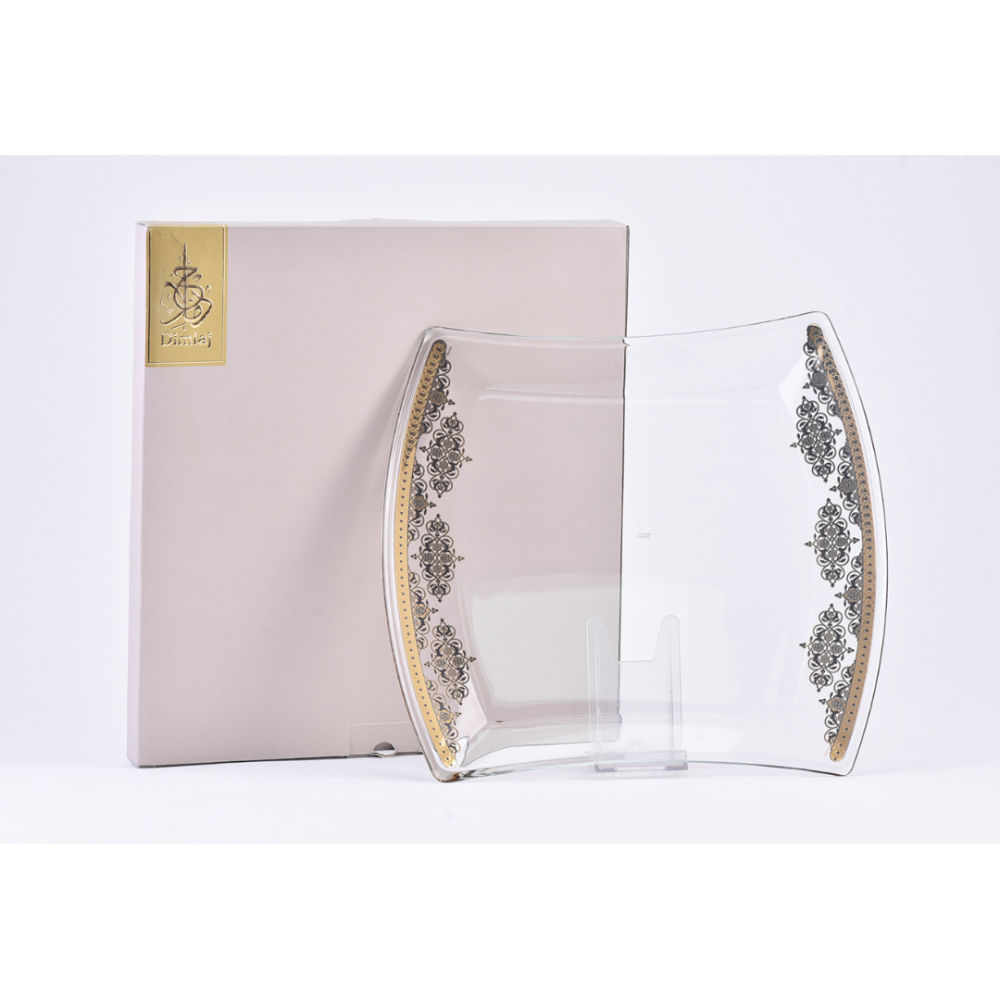 صحن تقديم زجاجي مذهب بزخرفة ملونة عصرية وانيقة