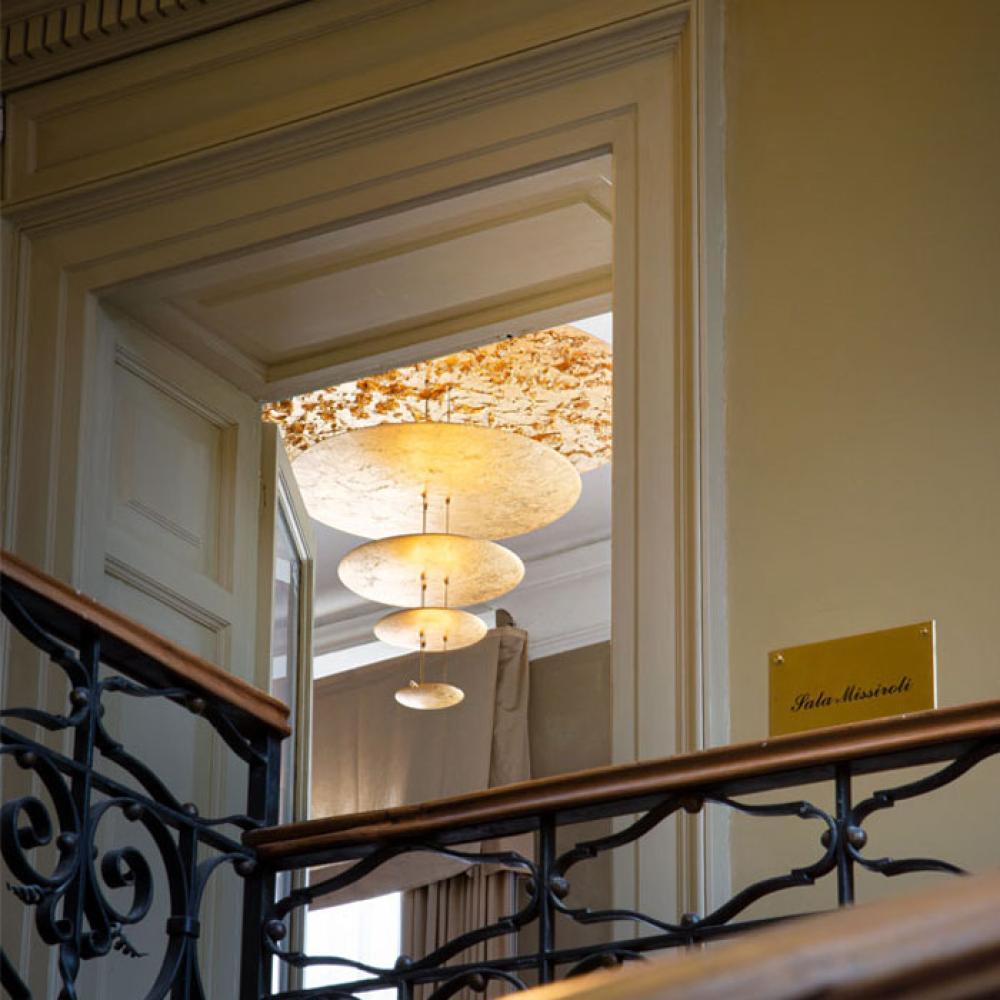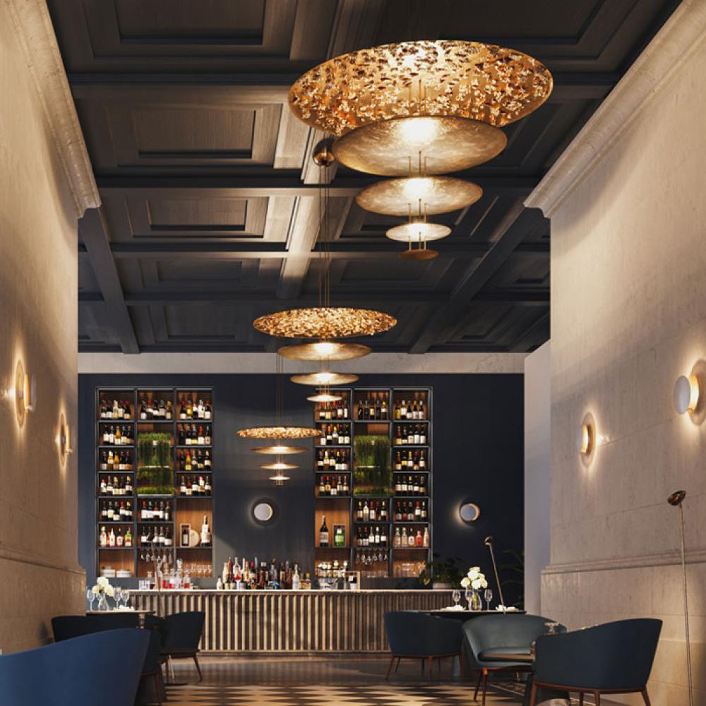 انارة سقف معلقة ثريا دائرية 4 حلقات تصميم مودرن لون ذهبي -54 واط