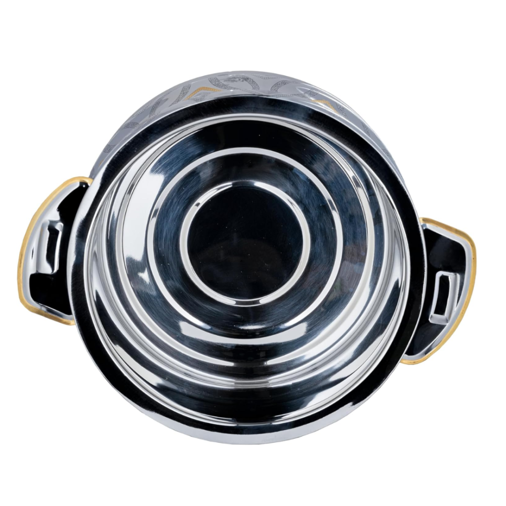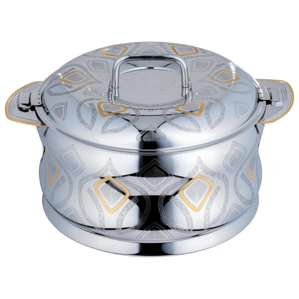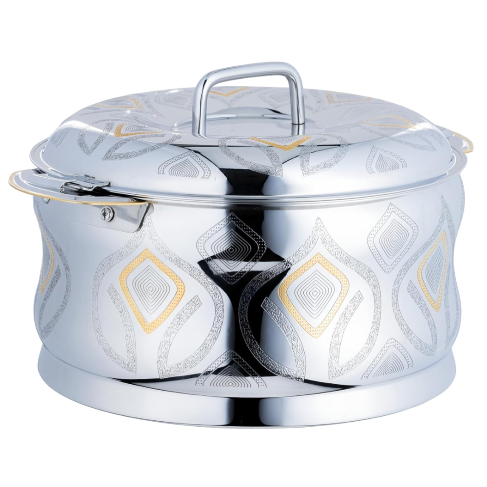 حافظي على حرارة ونكهة أطباقك مع حافظة الطعام المصنوعة من الستانلس ستيل من السيف، بتصميم أنيق يجمع بين اللون الفضي والذهبي لمظهر فاخر يليق بمائدتك في المناسبات اليومية والعزائم.
