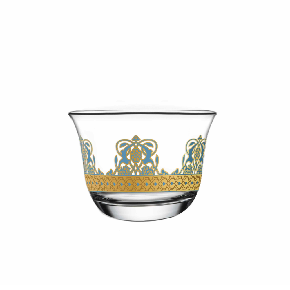 طقم فناجين قهوة عربية مذهبة بزخرفة ملونة عصرية وانيقة