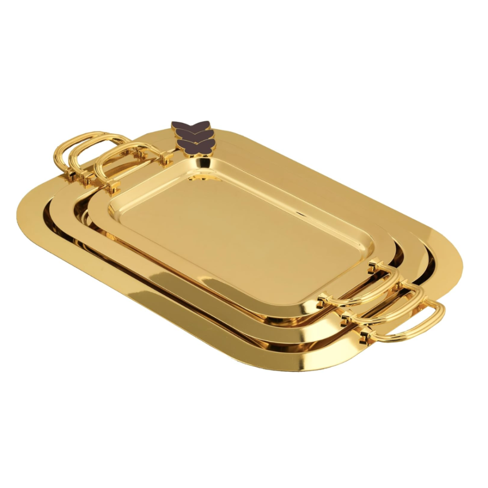 طقم صواني تقديم مستطيلة ستيل فراشة جانبية ومقابض من السيف