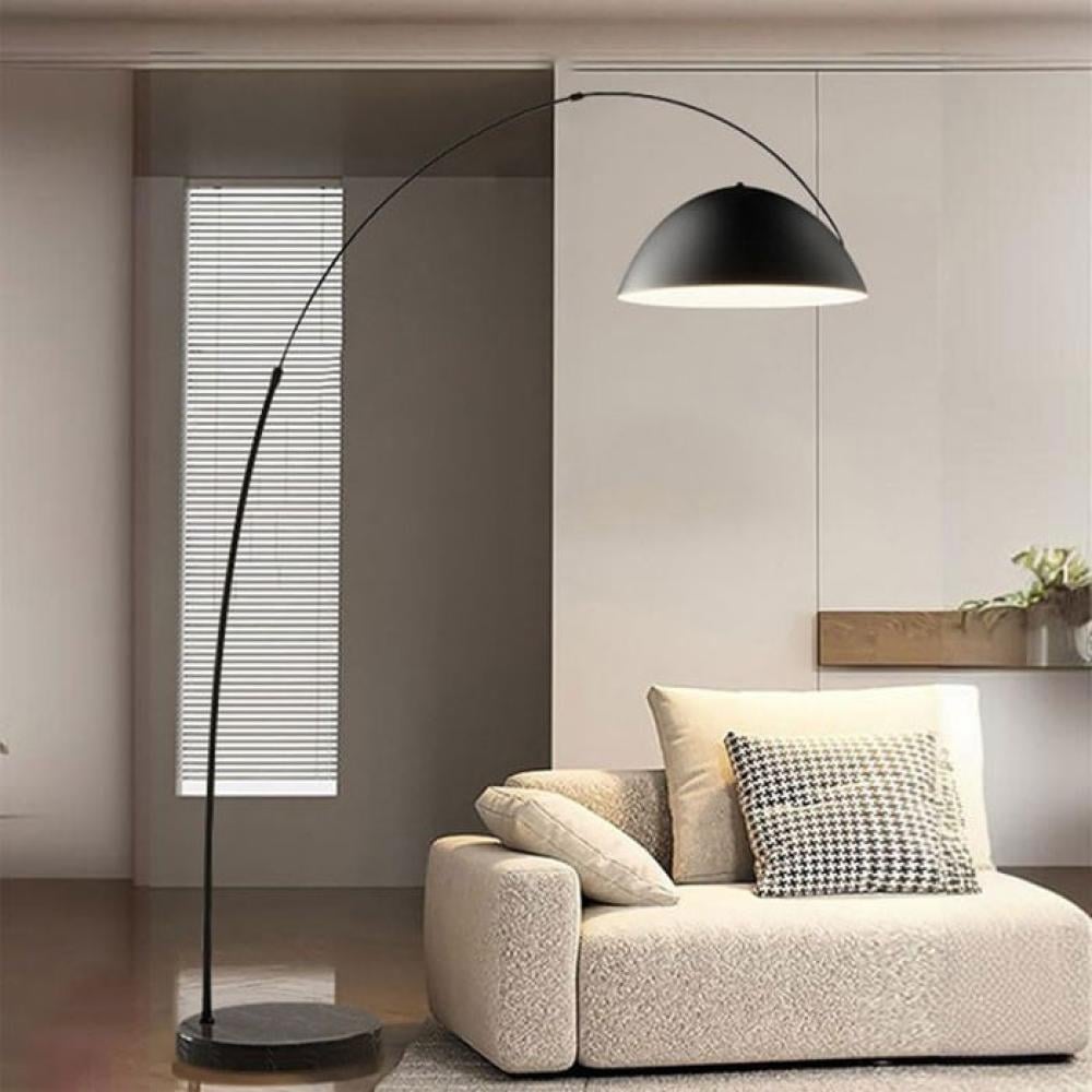 اضاءة ارضية ستاند مائل برأس اباجورة دائري لون أسود مطفي مودرن