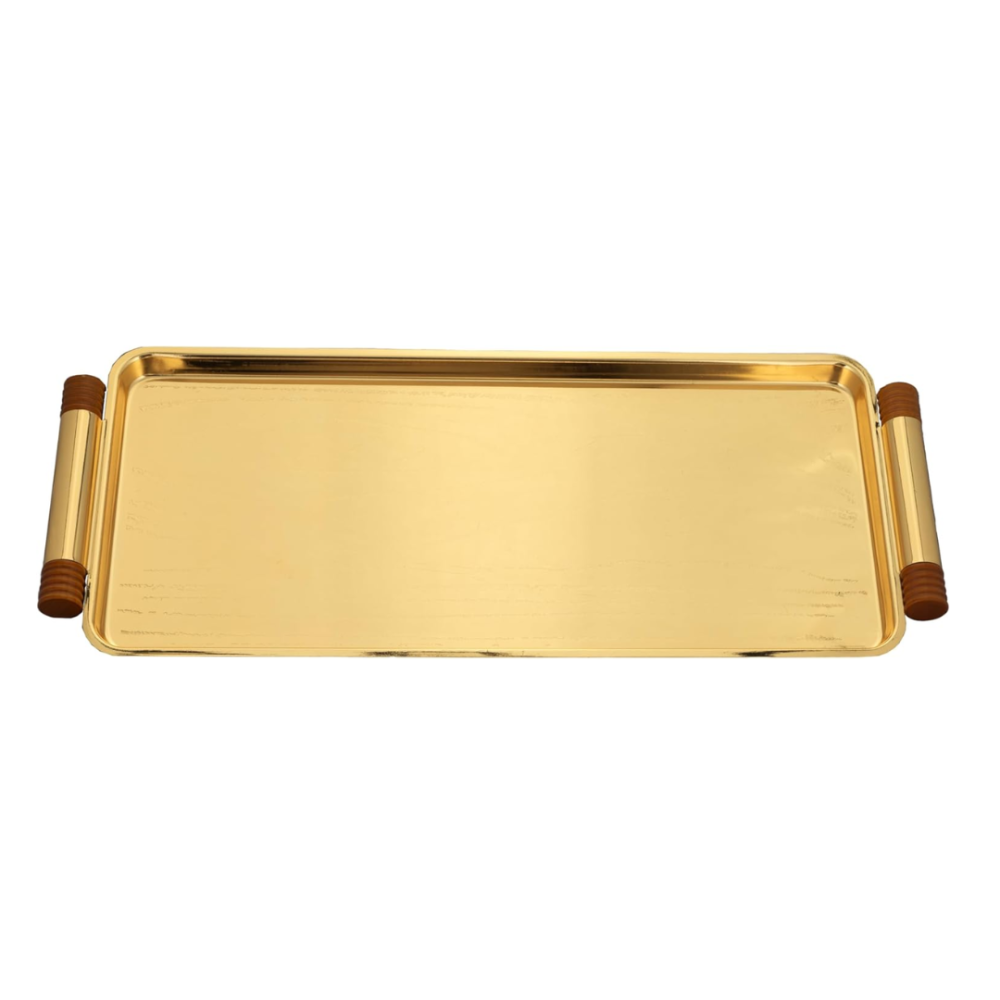 أضف لمسة من الفخامة إلى ضيافتك مع صينية التقديم المستطيلة من السيف، المصنوعة من الاستيل عالي الجودة باللون الذهبي الأنيق.