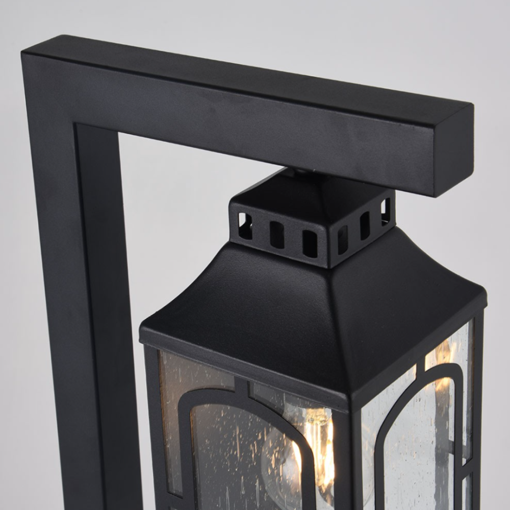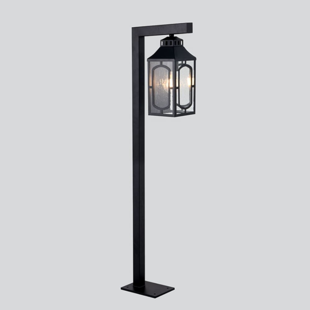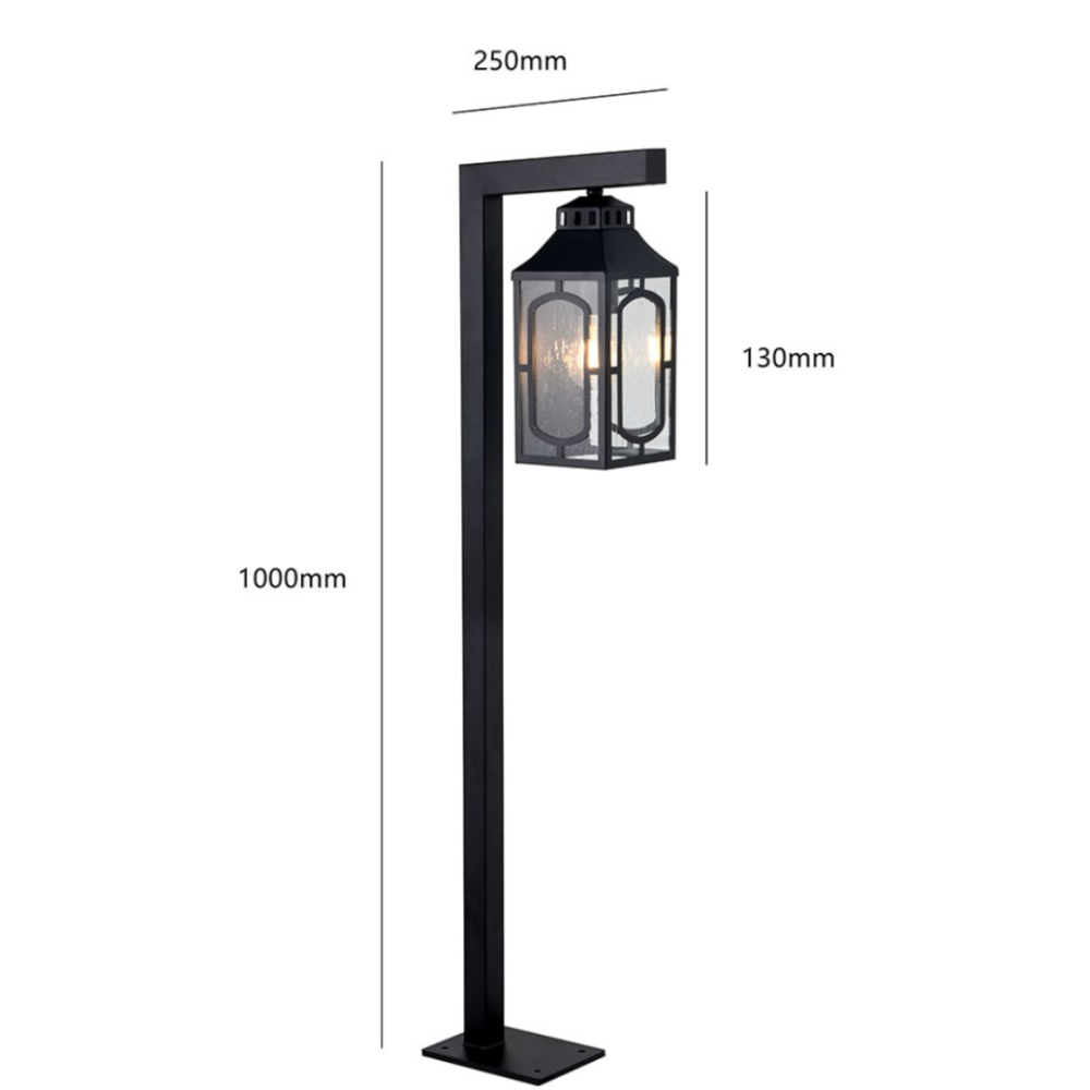 انارة خارجية - فانوس انارة حدائق مع عامود معدني - لون اسود