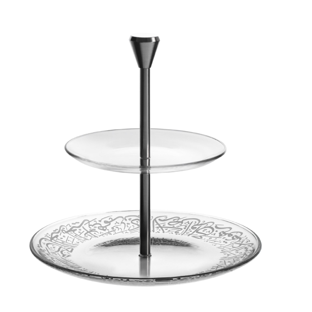 صينية تقديم زجاجية فاخرة طابقين محفورة بزخرفة من الخط العربي النسخي