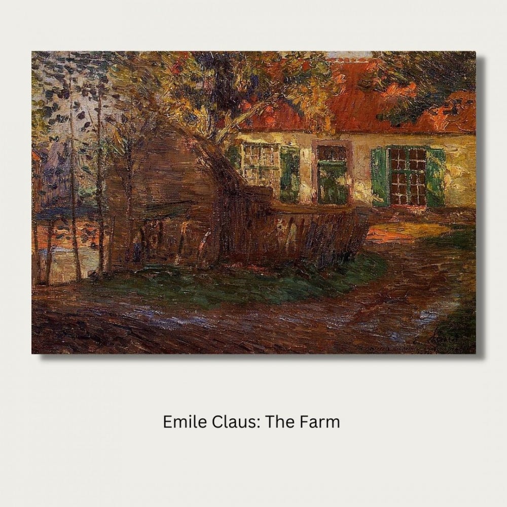 Emile was the twelfth child in a family of thirteen. As a child, Emil loved to draw and every Sunday he would walk 3 km to Waregem Academy to learn how to draw and graduated with a gold medal. Although Father Claus allowed him to take drawing lessons, he did not imagine a career as an artist for his son. Instead, Emile was sent as a baker's apprentice to Lille (France). Emile learned French there but the job of baker clearly did not appeal to him. He did not give up his desire to paint and wrote a letter to the famous composer and musician Peter Benoit, who was a family friend, for help. Peter Benoit was able to convince Father Klaus to allow his son to train at the Antwerp Academy of Fine Arts. Klaus had to pay for his studies himself. After graduation, Klaus moved into the country cottage and from his living room enjoyed a beautiful view across the River Lys. He was clearly inspired by the space and lighting of the country house. Artistically, Klaus flourished but his international success was interrupted by World War I. He fled to London where he found a house and workshop on the banks of the River Thames. Influenced by the French Impressionists, such as Claude Monet whose works he became acquainted with during his trips to Paris in the 1890s, Klaus gradually turned from naturalistic realism to a very personal style of impressionism called luminism, due to the luminous palette he used. Klaus is considered the pioneer of Belgian gloss. He is also known as the “Sun Painter.” The day before his death, he painted a pastel bouquet of flowers sent to him by Queen Elisabeth of Belgium. Klaus was buried in his own garden in Astin and a street was named after him in Brussels.