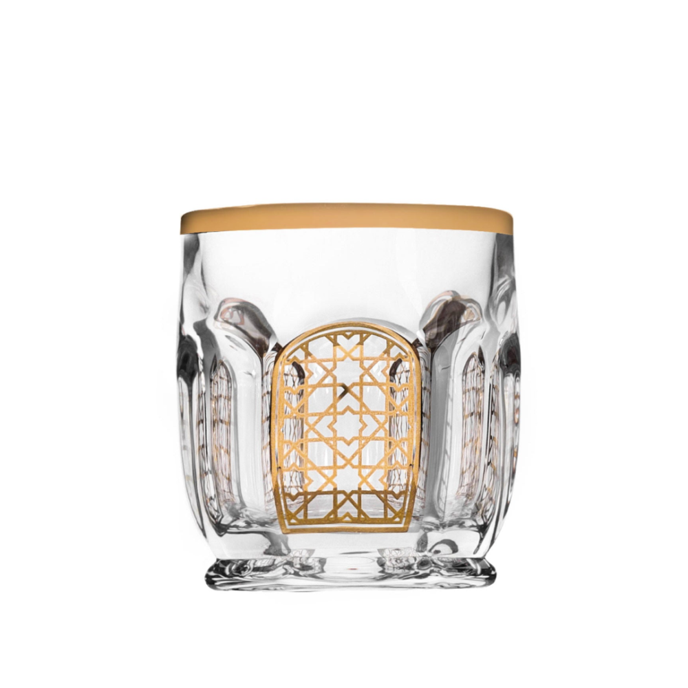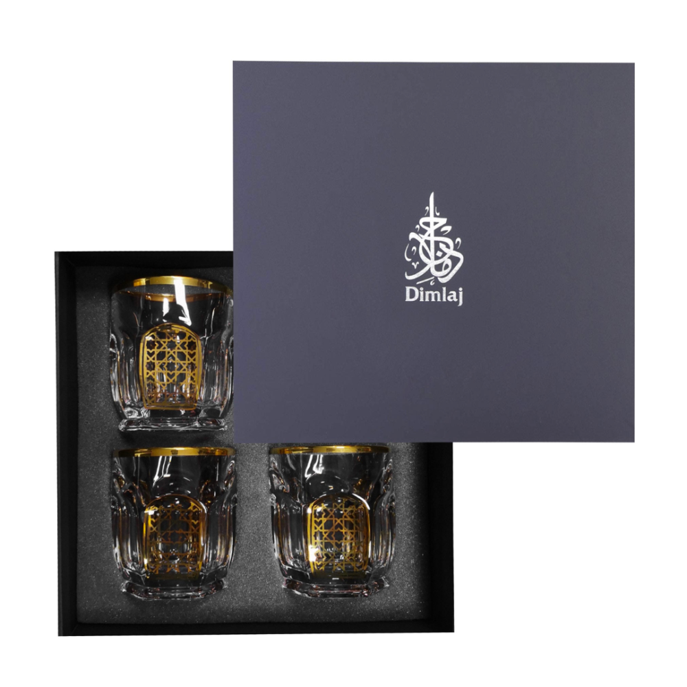 طقم كاسات زجاجية فاخرة بزخرفة ذهبية مستوحاة من الطراز الاندلسي