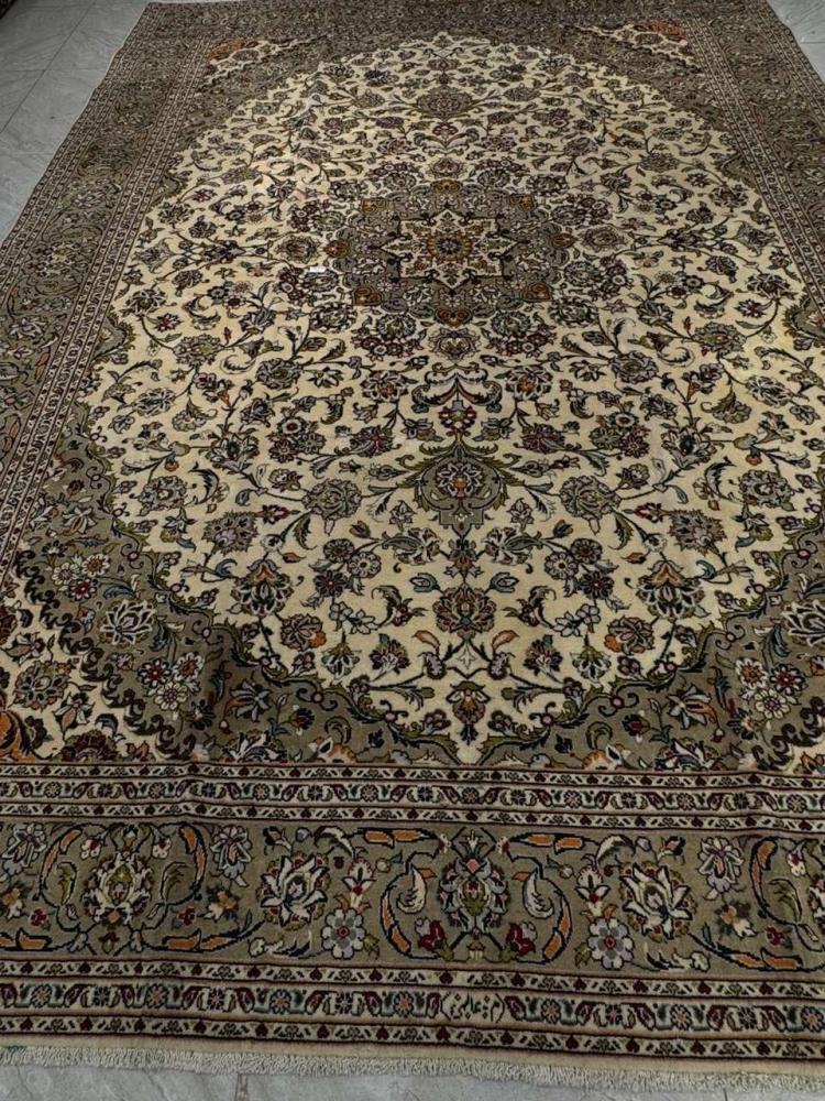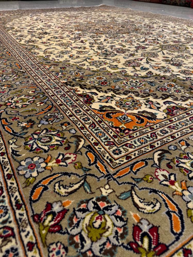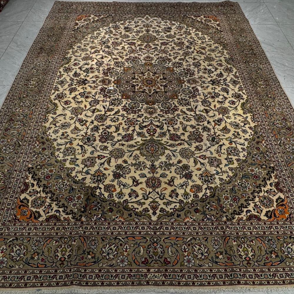 أما الحواف، فتأتي مزينة بنقوش دقيقة تعكس مزيجًا من الإبداع التقليدي والجمال الأصيل، مما يجعل كل سجادة من كاشان ليست مجرد قطعة للزينة، بل إرثًا فنيًا خالدًا.
