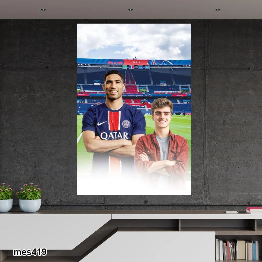 لجعل لوحات جدارية لعشاق كرة القدم أكثر تميزًا وفريدة، يوفر متجر ميساكي خدمة تخصيص اللوحات بطريقة مبتكرة تناسب كل عاشق لكرة القدم. من خلال هذه الخدمة، يمكنك إضافة صورتك الشخصية أو صورة ابنك، أحد أصدقائك، أو أي شخص تحب على اللوحة، لتصبح جزءًا من تصميم لاعبك المفضل أو فريقك المحبوب.