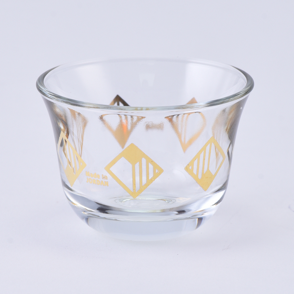 طقم فناجين قهوة عربية زجاجية مذهبة بزخرفة هندسية انيقة