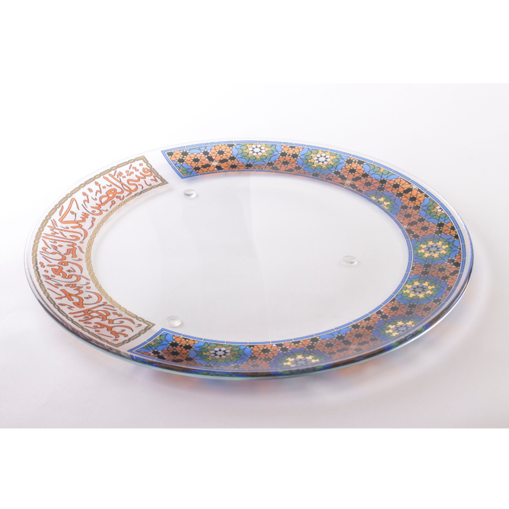 طقم صحون زجاجية فاخرة بزخرفة ملونة انيقة من الخط العربي