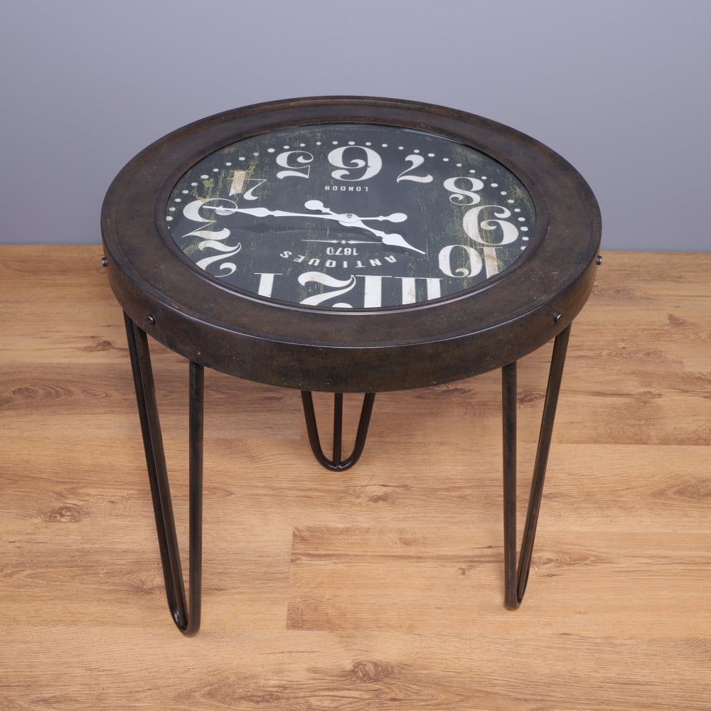 Service table used as a side table for coffee, serving table with a unique modern design with a large clock