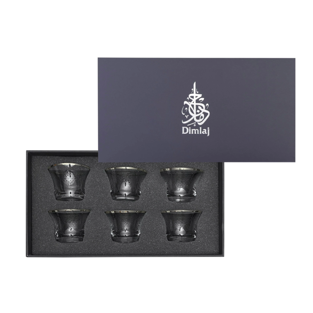 طقم فناجين قهوة عربية بلاتين بزخرفة عصرية وانيقة