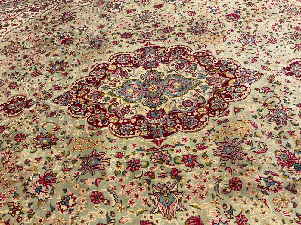 كثافة العقد: تتراوح كثافة العقد في سجاد كرمان بين 120,000 إلى 800,000 عقدة لكل متر مربع، مما يضفي عليه متانة ودقة في التفاصيل.