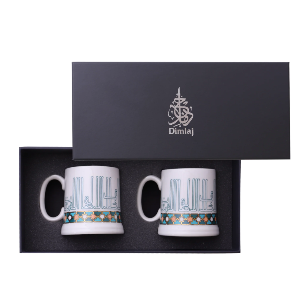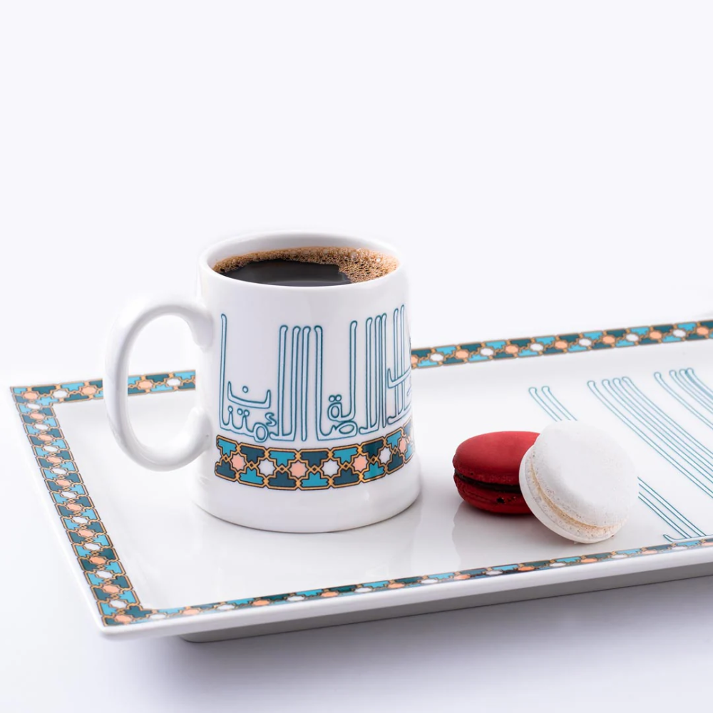 طقم اكواب قهوة بورسلان فاخر بزخرفة انيقة من الخط العربي