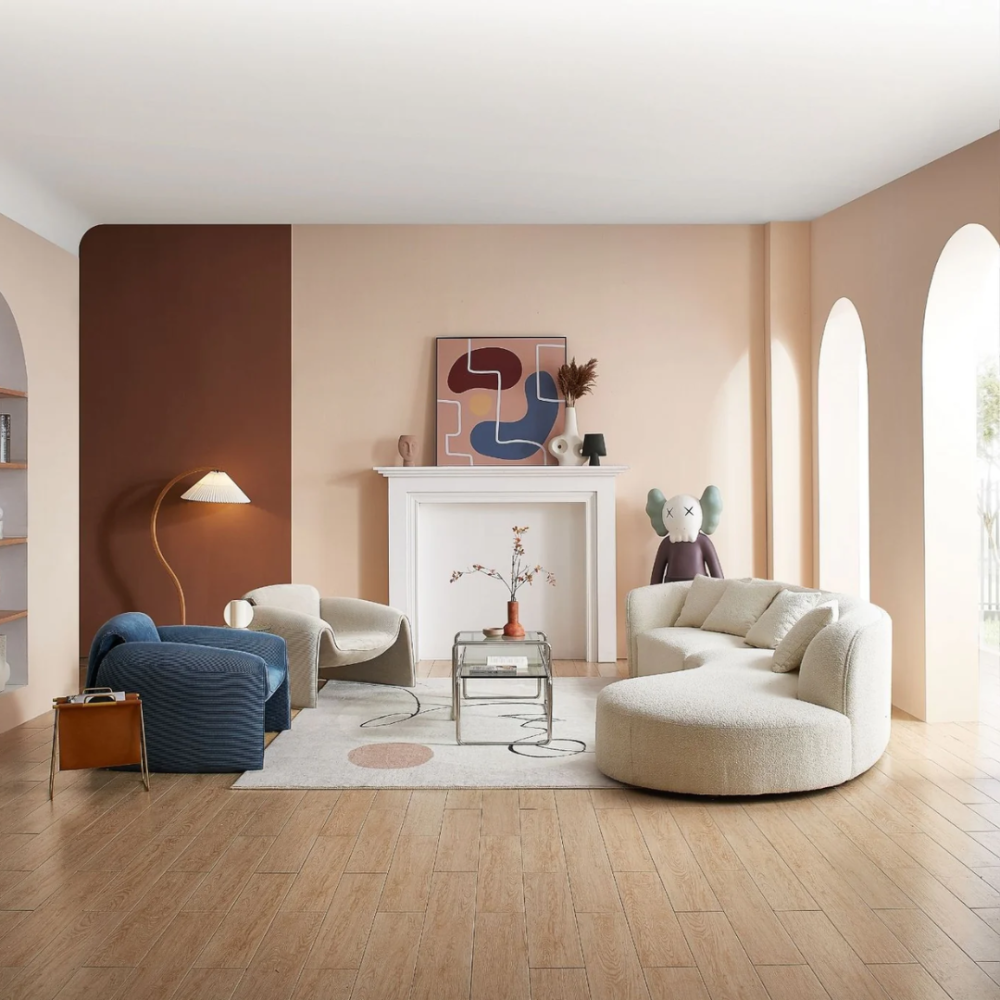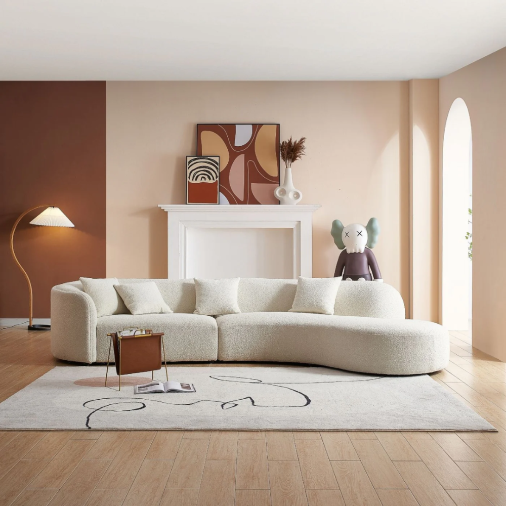 لون كنبة بوكليه مناسب مع معظم الأثاثات والمفروشات والديكورات في المنازل، ومع ألوان الجدران.