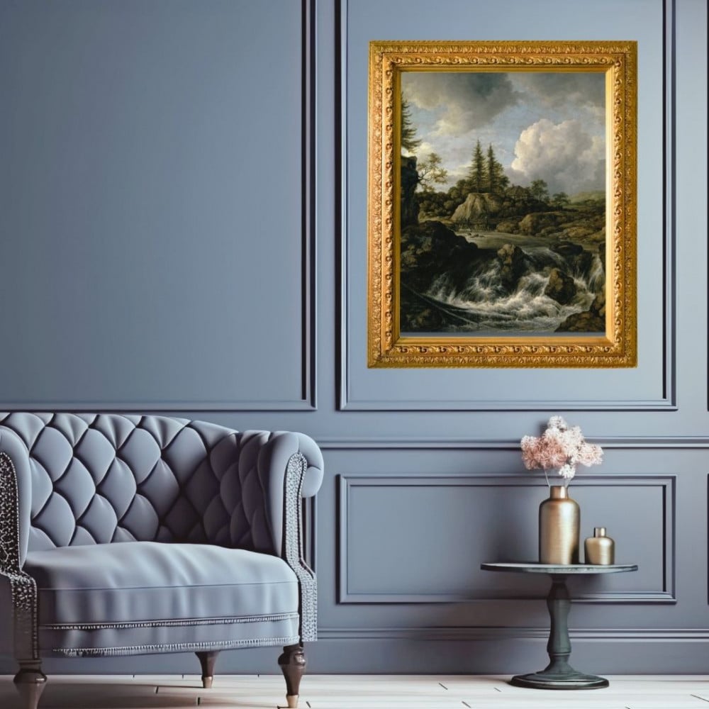 A painting called Mill on the River ( Landscape with Waterfall ), a painting painted by Jacob van Ruysdel. Year 1660