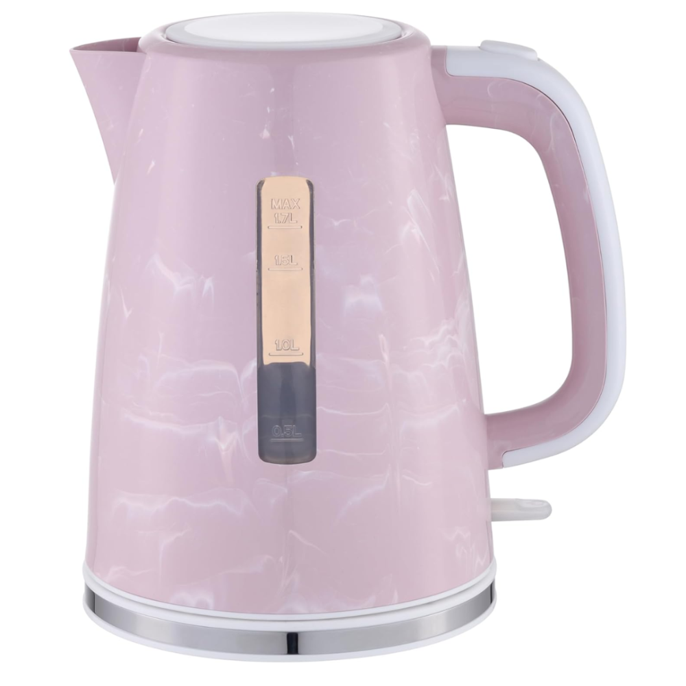 - اللون الزهري الجذاب يمنح الغلاية مظهرًا عصريًا يضيف لمسة من الأناقة لأي مطبخ.